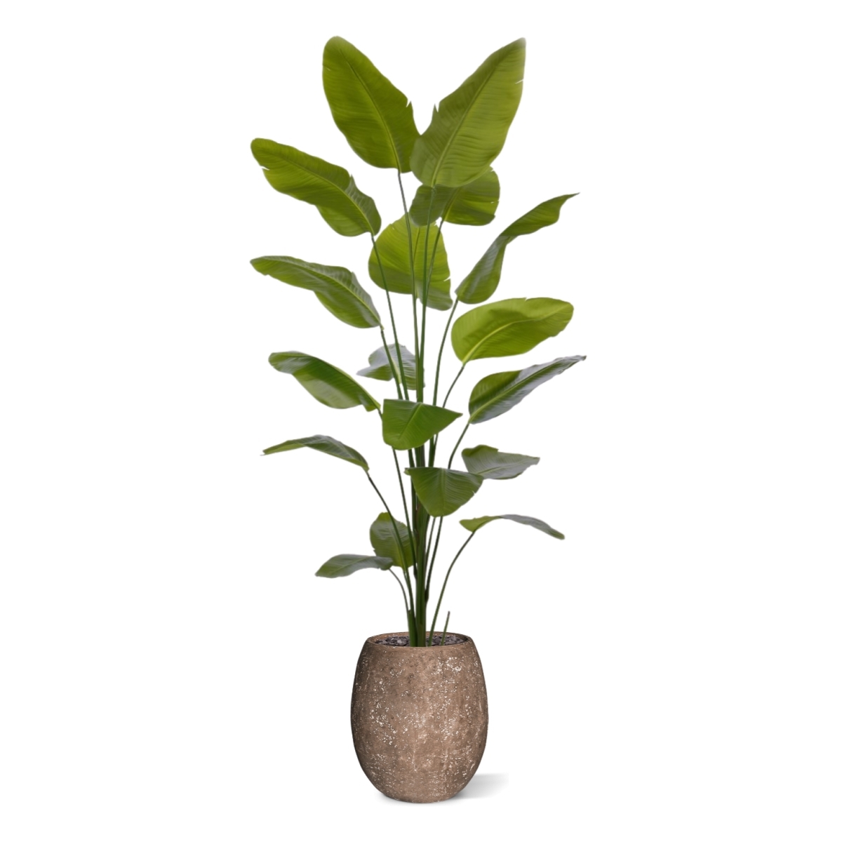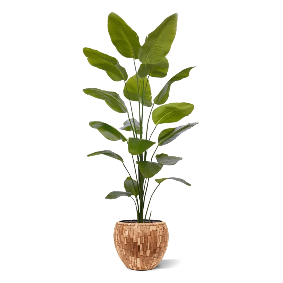 Dategli un posto in salotto o usatene un certo numero per ravvivare l'ufficio o lo showroom. Questa pianta artificiale può essere collocata in un vaso ornamentale alto o basso. Dare alla pianta un po' di spazio le consentirà di svilupparsi al meglio. La Strelitzia sembra una vera pianta della giungla e si adatta molto bene a un'atmosfera tropicale o bohémien. I vasi decorativi illustrati di seguito possono essere ordinati direttamente insieme ad essa con un costo aggiuntivo.