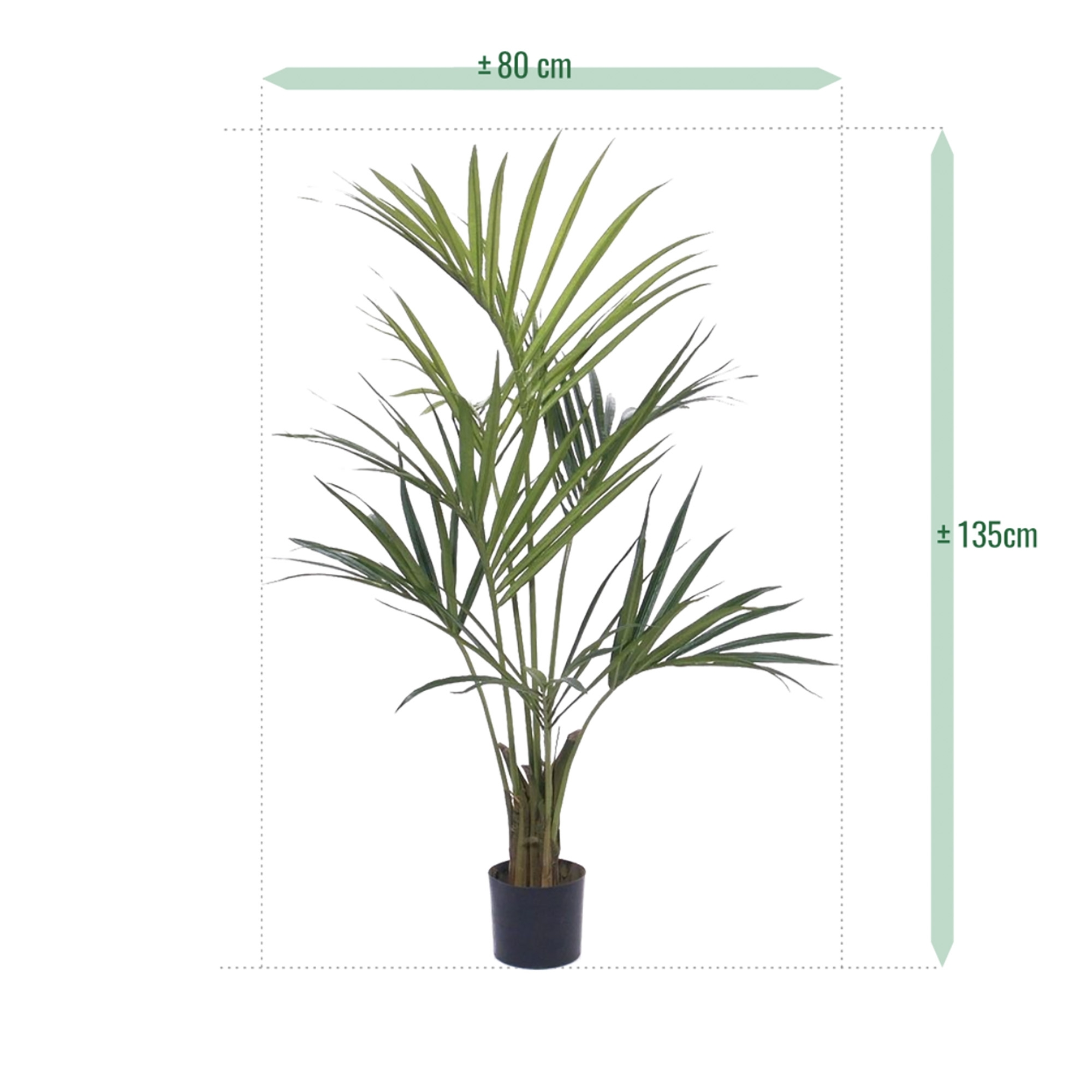 La palma Kentia è probabilmente la palma più famosa e questo è da vedere. Con questa palma artificiale porterete i tropici a casa vostra! Questa Kentia è alta circa 135 cm ed è composta da lunghi rami di palma con foglie appuntite molto ben contraffatte. È sta