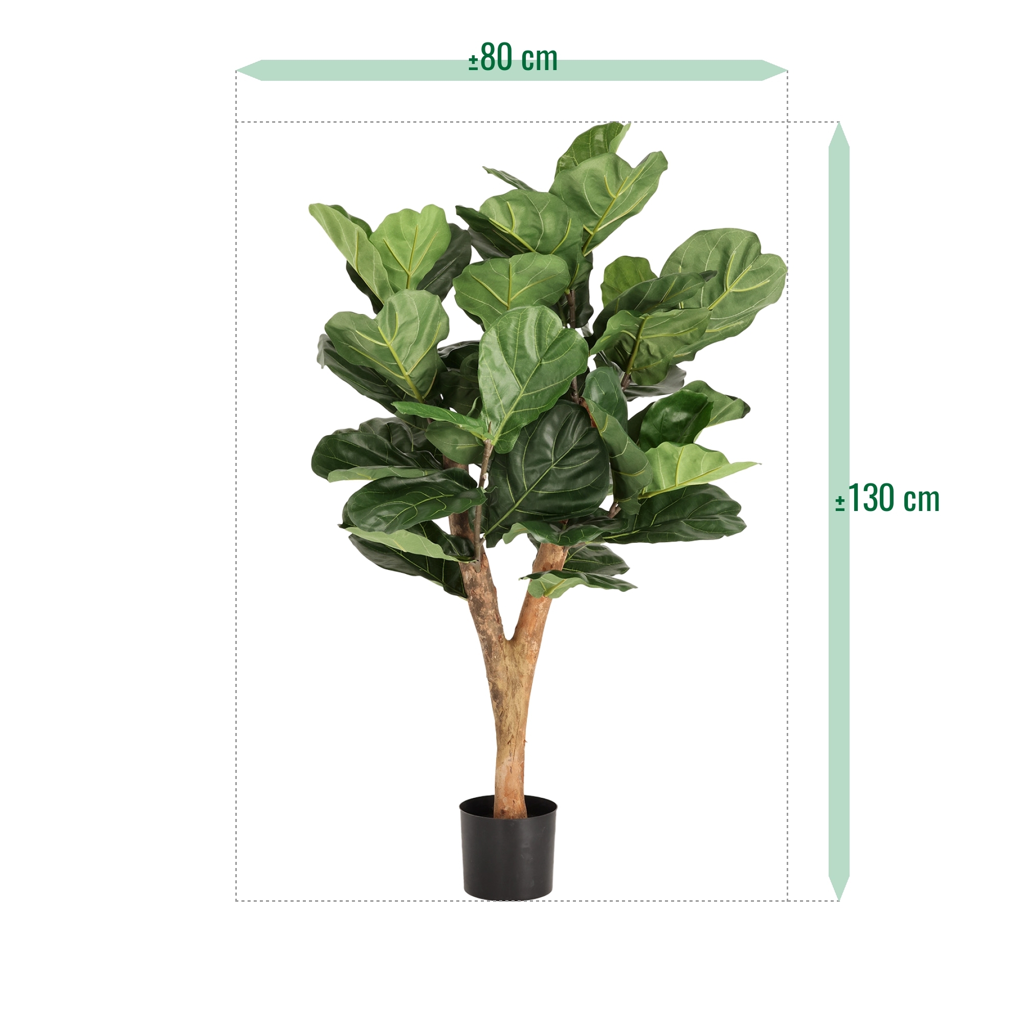 Il Lyrata Deluxe Y Albero Artificiale 130 cm è un’aggiunta elegante e naturale a qualsiasi ambiente. Con un’altezza di 130 cm e una larghezza di circa 80 cm, questo albero artificiale dona immediata eleganza e un’atmosfera calda e lussuosa a casa, ufficio o struttura ricettiva. Le grandi e rigide foglie del Ficus Lyrata, conosciuto anche come ficus a foglia larga, sono riprodotte con cura e mostrano nervature finemente dettagliate. Grazie al tronco in legno reale, questo albero Lyrata artificiale appare incredibilmente realistico e si integra perfettamente in interni moderni, naturali e accoglienti.