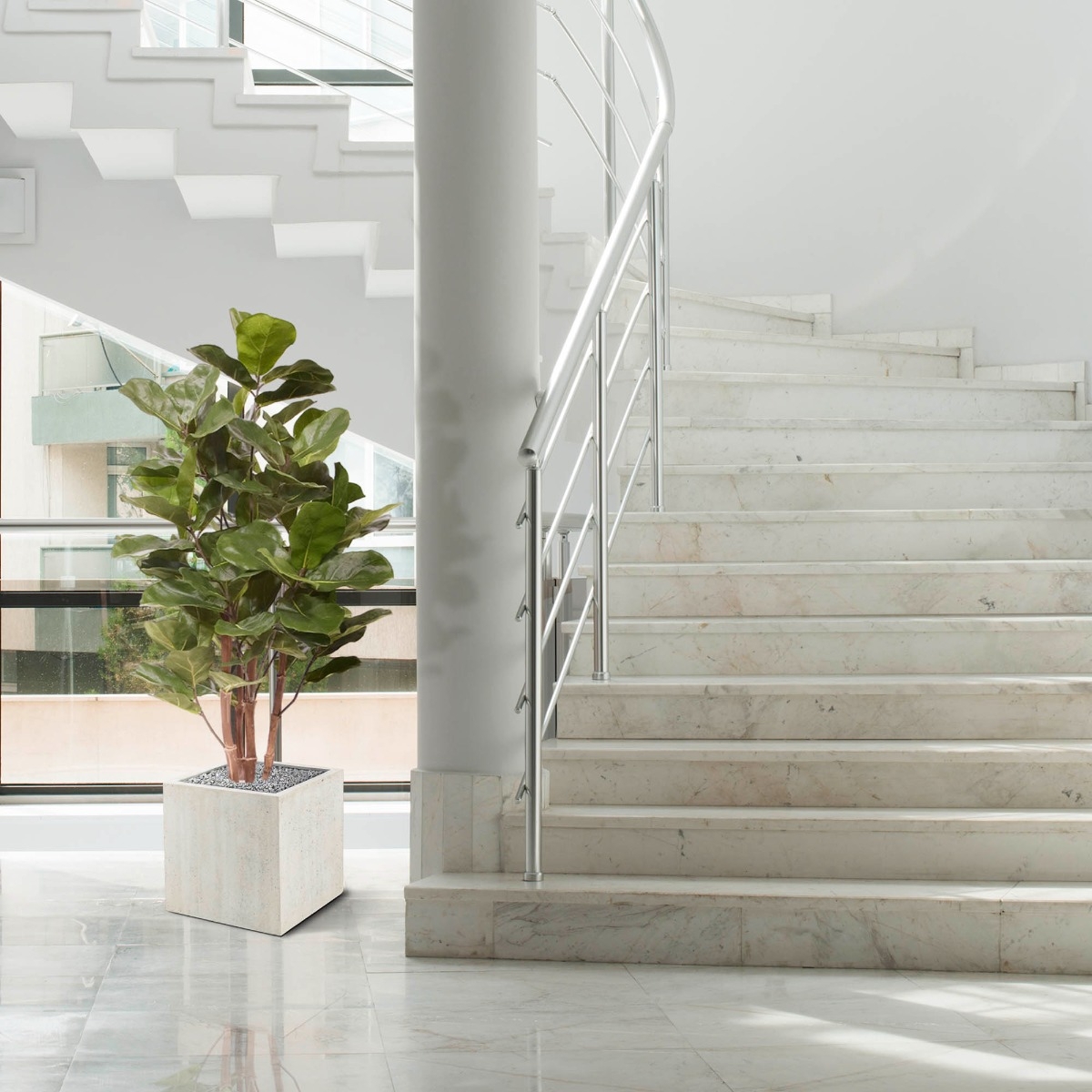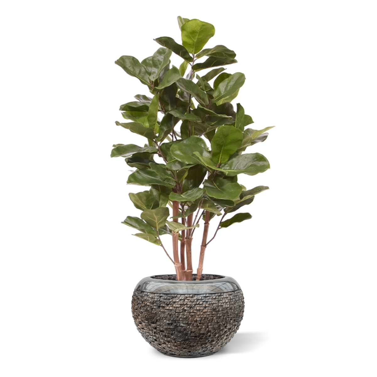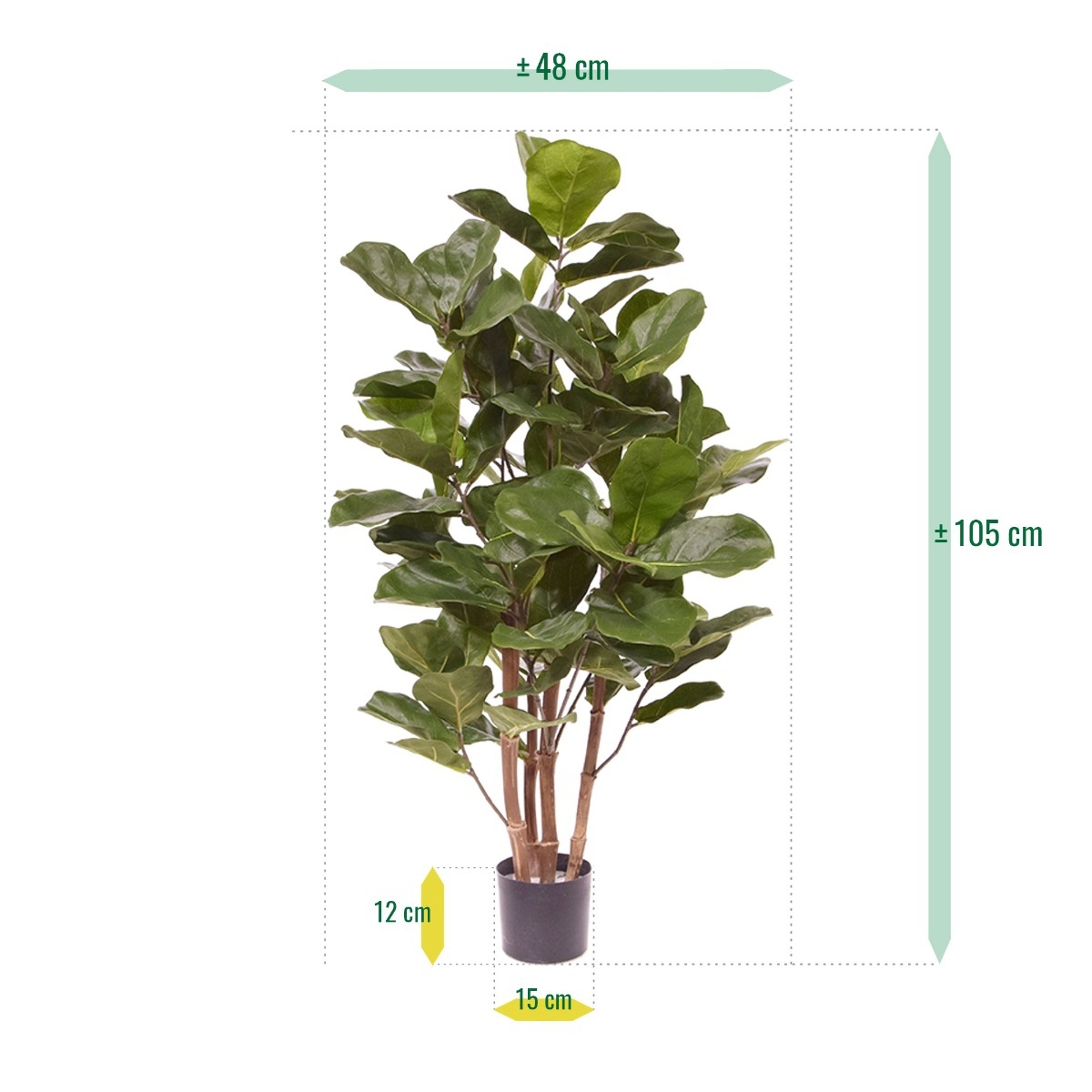 La pianta artificiale Ficus Lyrata è una pianta a foglia larga alta 105 cm. Se non avete il pollice verde, questa replica è il modo ideale per aggiungere facilmente un po' di verde in casa o in ufficio. Per la forma delle sue foglie, il Lyrata è noto anche com