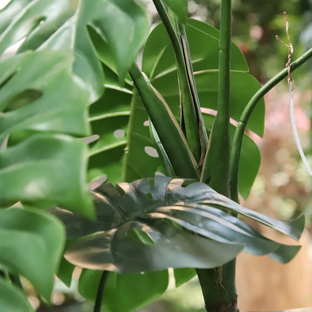 La Monstera come la conoscete, forse una delle piante d'appartamento più popolari, ma questa volta con un tocco realistico: Questa caratteristica aggiuntiva offre un tocco più morbido e realistico quando si toccano le foglie. Inoltre, la pianta presenta una lu