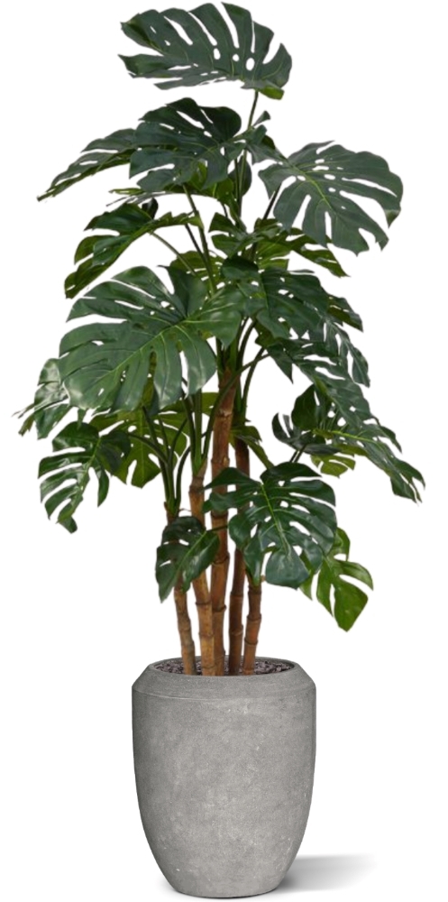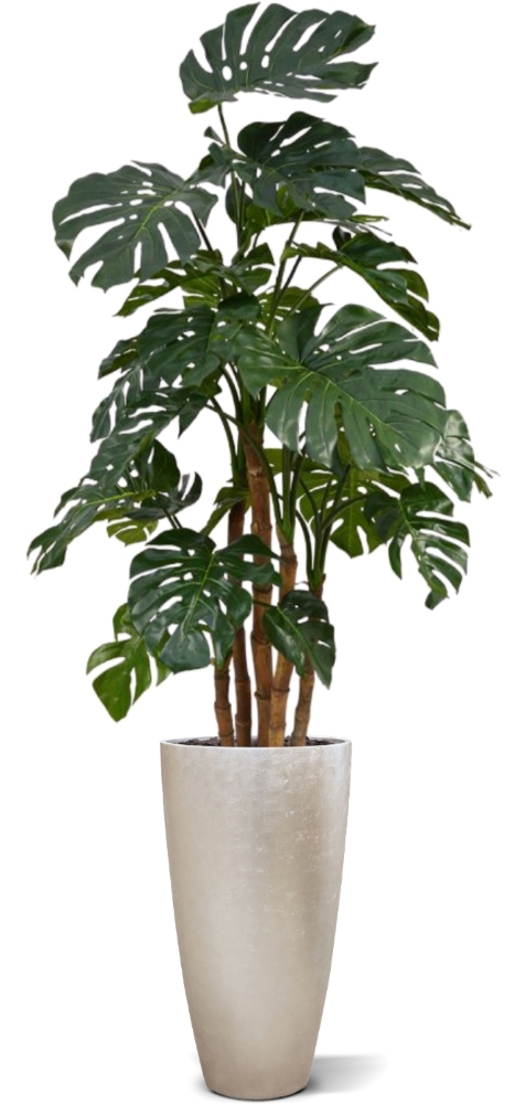Il diametro della Monstera Deluxe è di circa 105 cm e l'altezza supera i 180 cm. Grazie al suo aspetto imponente, questa pianta artificiale è particolarmente adatta per essere collocata in vasi sia alti che bassi.