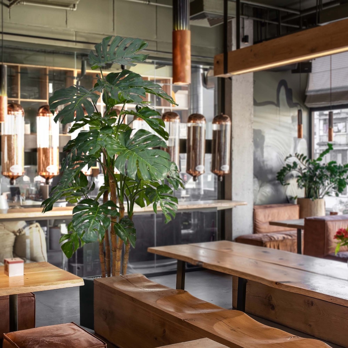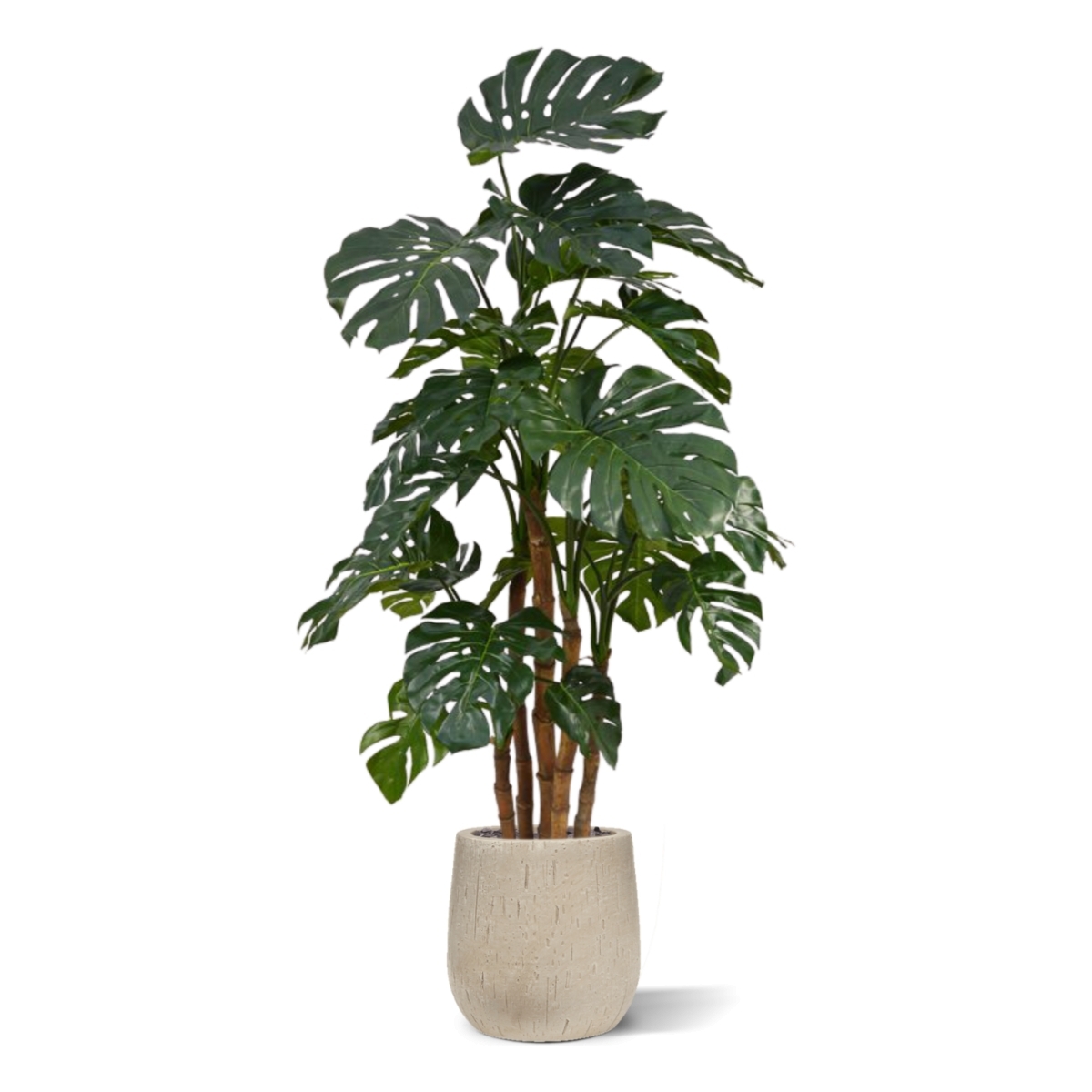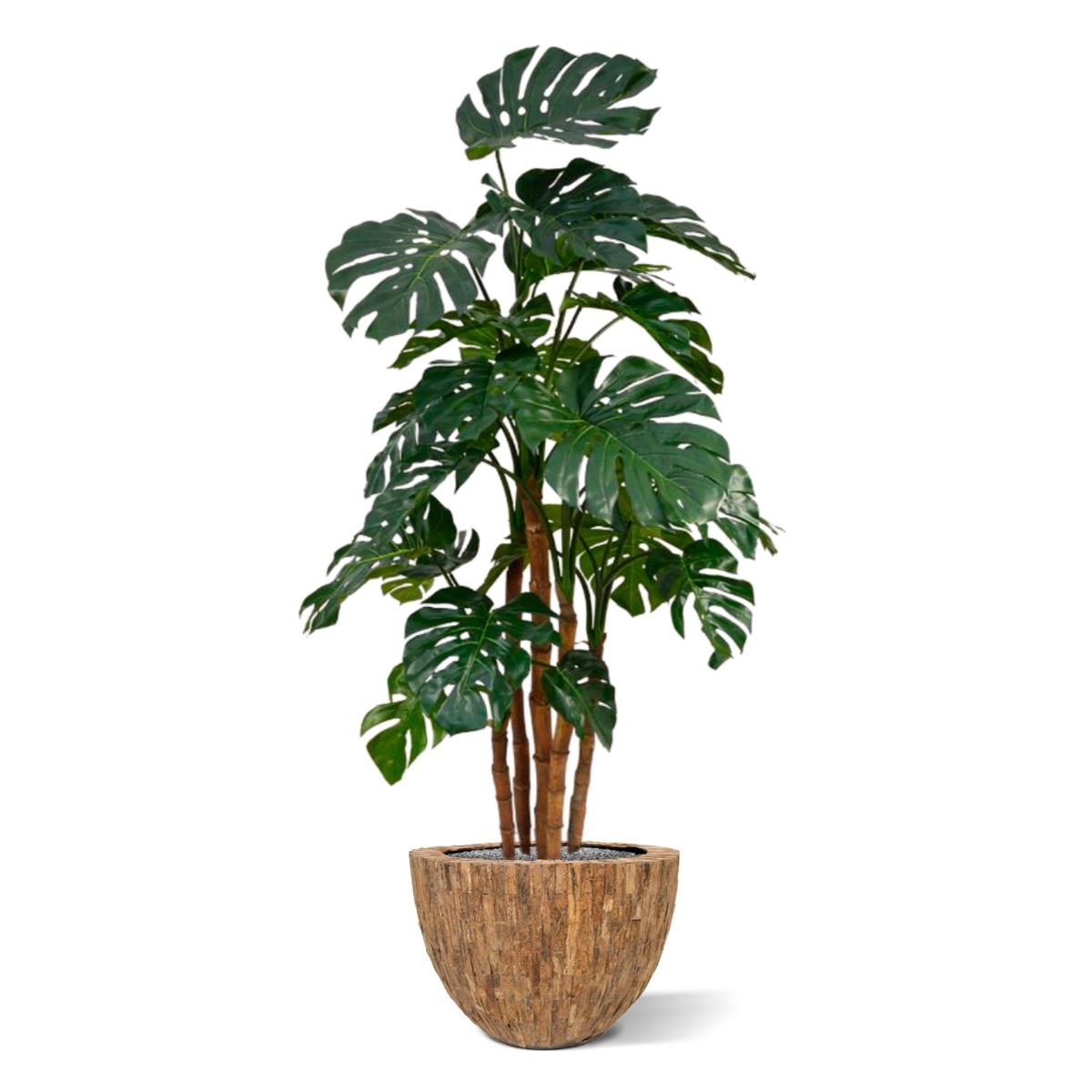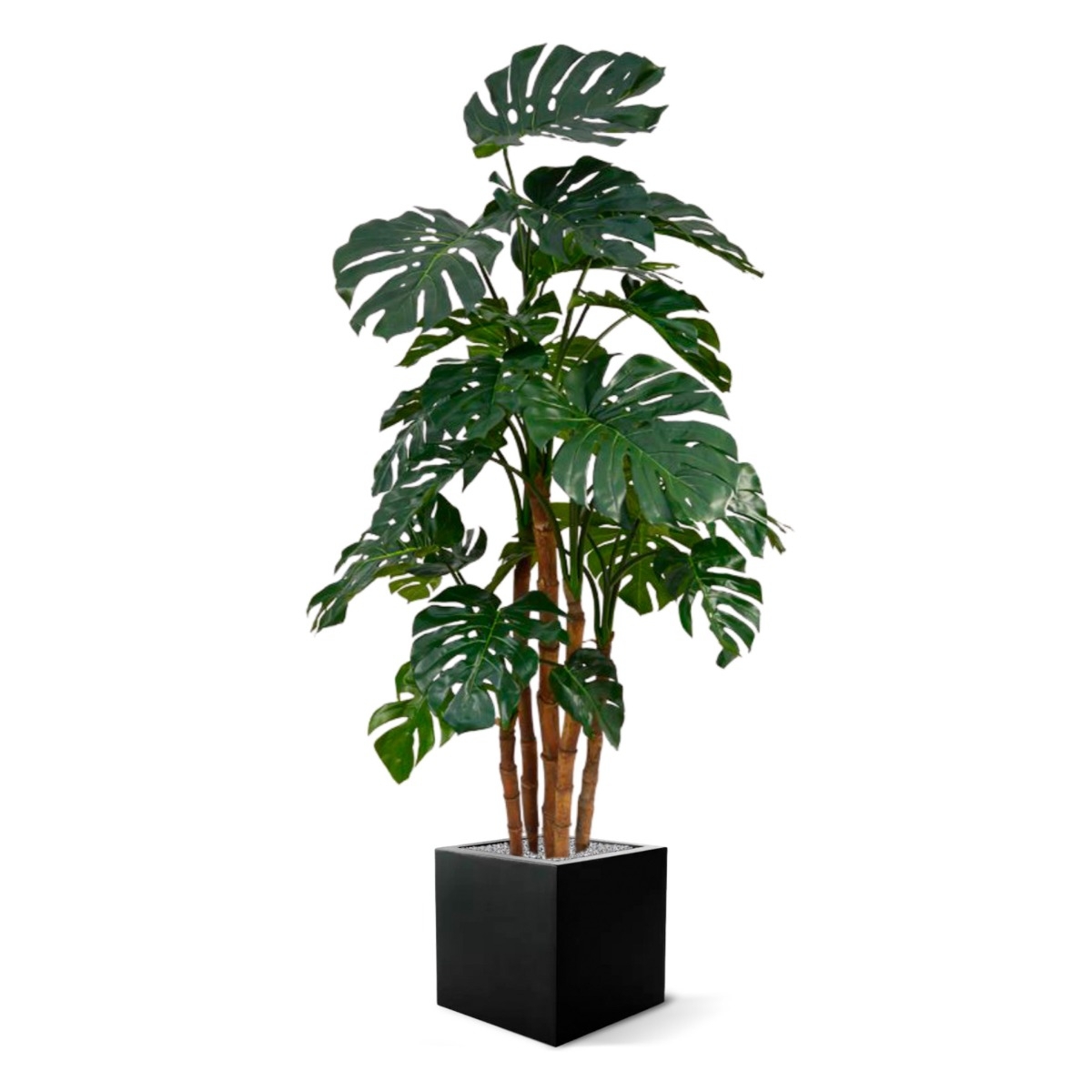 Questa Monstera Deluxe gigante, chiamata anche pianta del buco, si troverà perfettamente a suo agio in un interno o in un ufficio di lusso. Le splendide foglie artificiali di seta verde scuro non solo sono ben ricreate, ma sono anche di dimensioni molto grandi, facendo apparire la pianta molto voluminosa. I 5 robusti steli sono realizzati in vero legno.