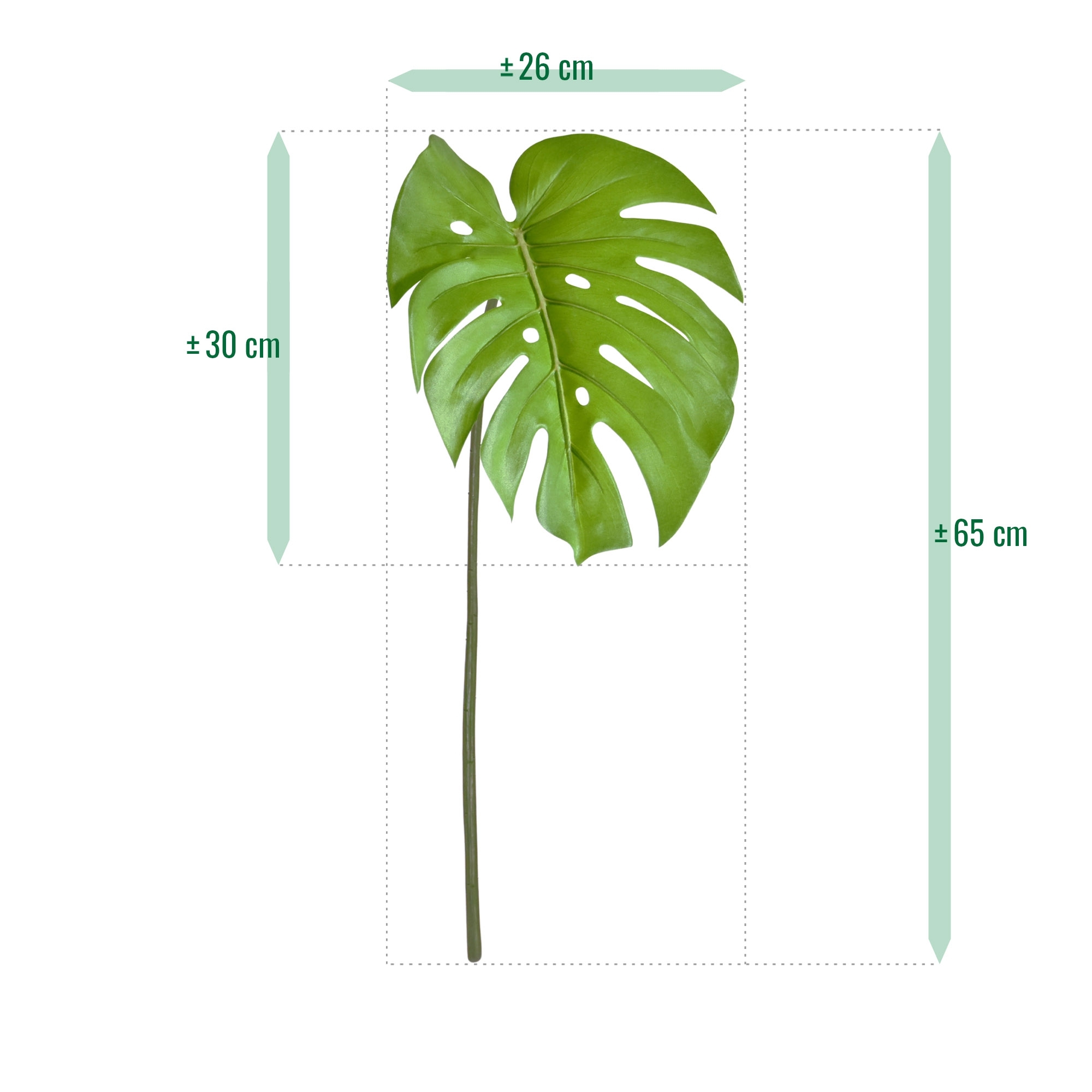 Questa foglia di Monstera serve come prodotto di base per molte possibilità e progetti. Come standard, questa foglia viene fornita senza vaso, il che la rende facile da incorporare in una composizione per un insieme decorativo.