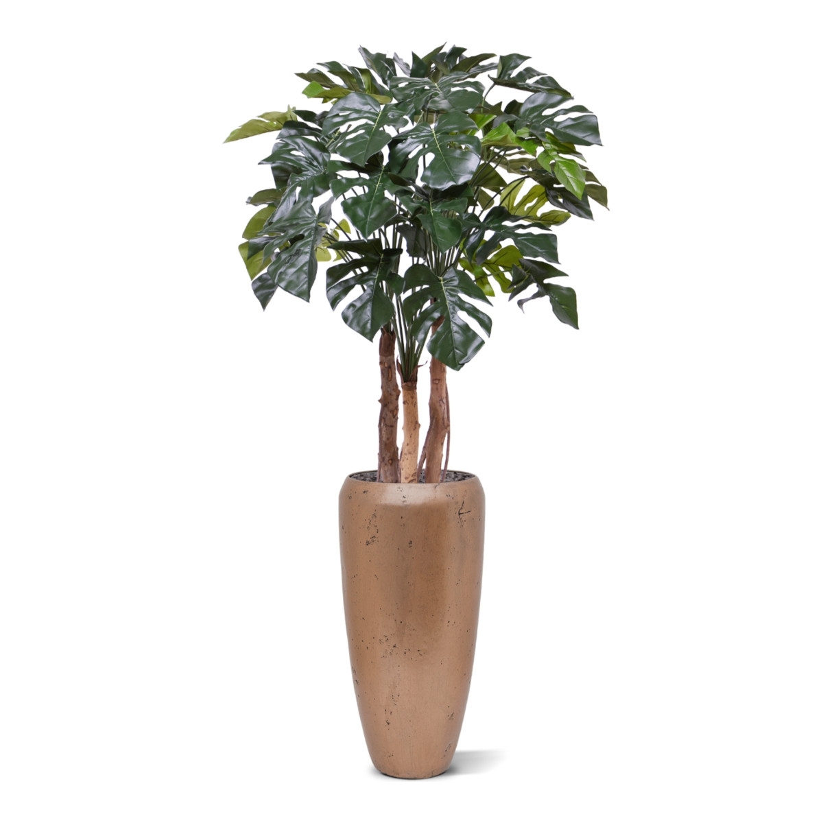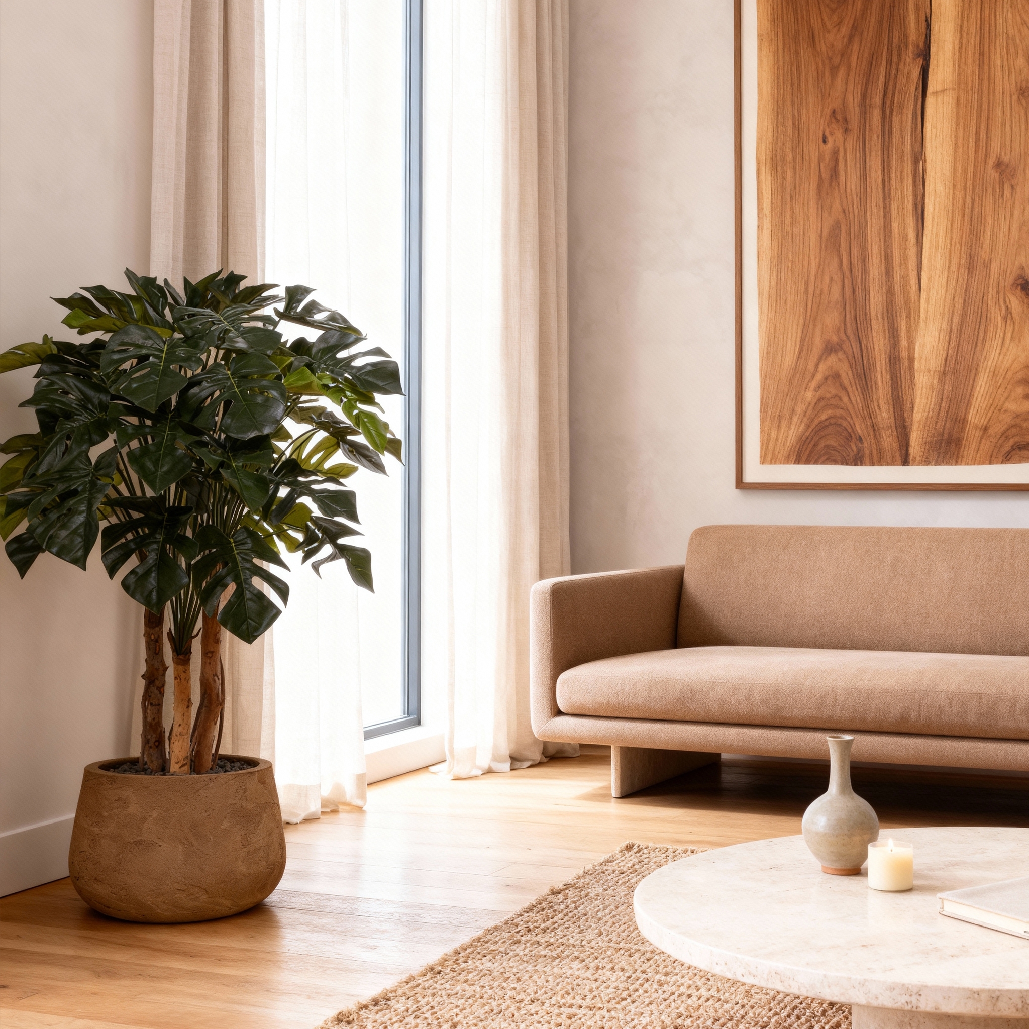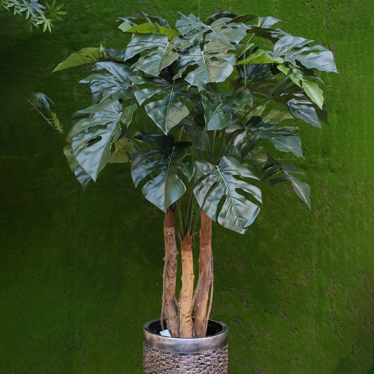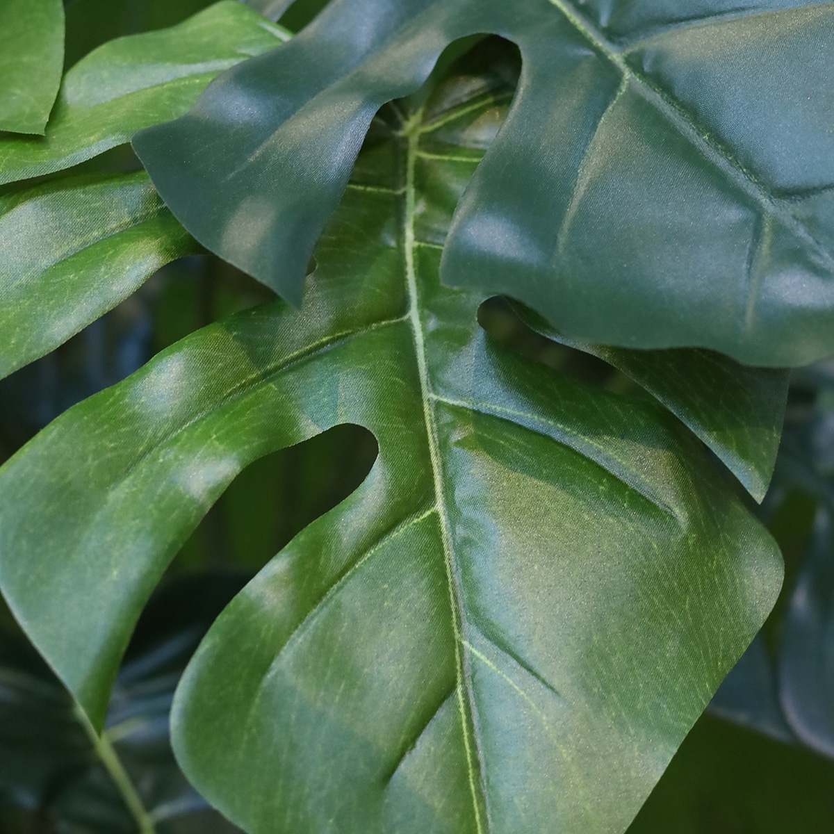 Ciò che distingue questa pianta artificiale è la solida base di vero legno su cui è costruita. Il tronco in legno non solo conferisce stabilità alla pianta, ma aggiunge anche un tocco di autenticità. Che si tratti di rinnovare il salotto, l'ufficio o un negozio, questa pianta artificiale Monstera Deluxe è un'aggiunta senza tempo che offre uno splendore verde per tutto l'anno, senza il fastidio della manutenzione. Portate la natura in casa senza compromettere lo stile e la qualità con questa bellissima pianta artificiale.
