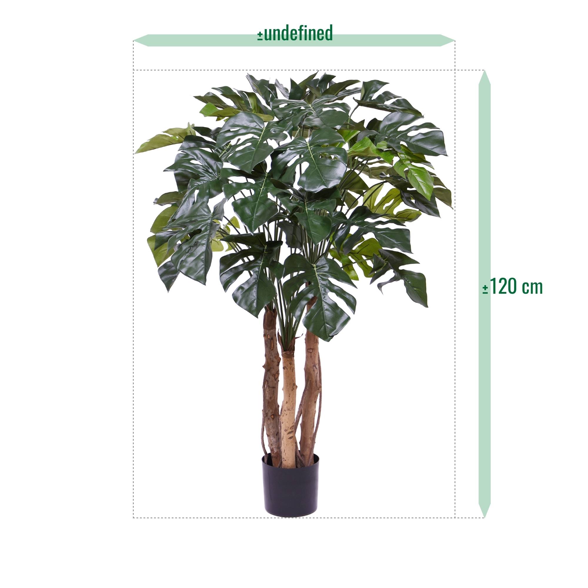 Porta a casa tua la bellezza lussureggiante della natura con la nostra pianta artificiale Monstera Deluxe su stelo. Con un'altezza di 120 cm e un'impressionante larghezza di 80 cm, questa creazione artistica aggiunge un tocco di splendore tropicale a qualsiasi