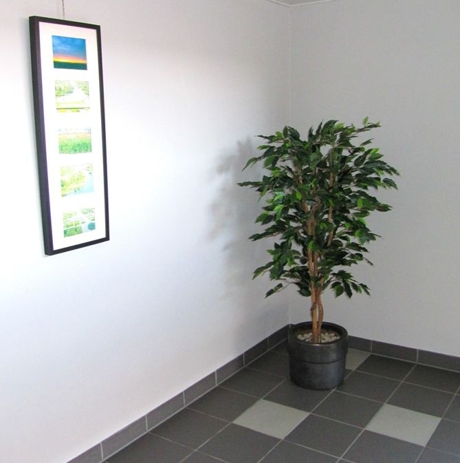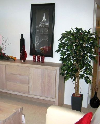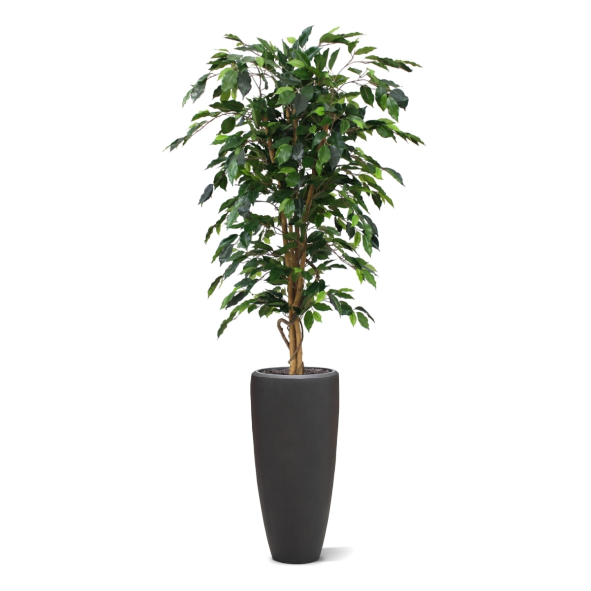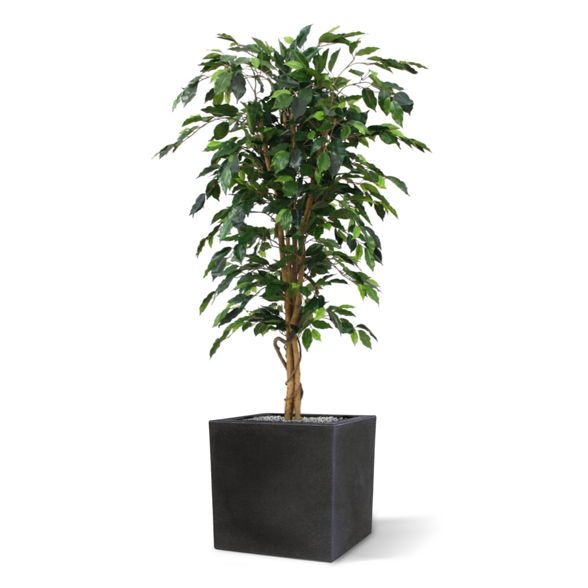 L'albero artificiale più venduto! Questo Ficus di seta ha più di 800 foglie, costruite su un vero tronco di legno. Alla consegna, questo Ficus artificiale sarà invasato in un vaso interno di plastica. I vasi decorativi mostrati nell'immagine possono essere ord