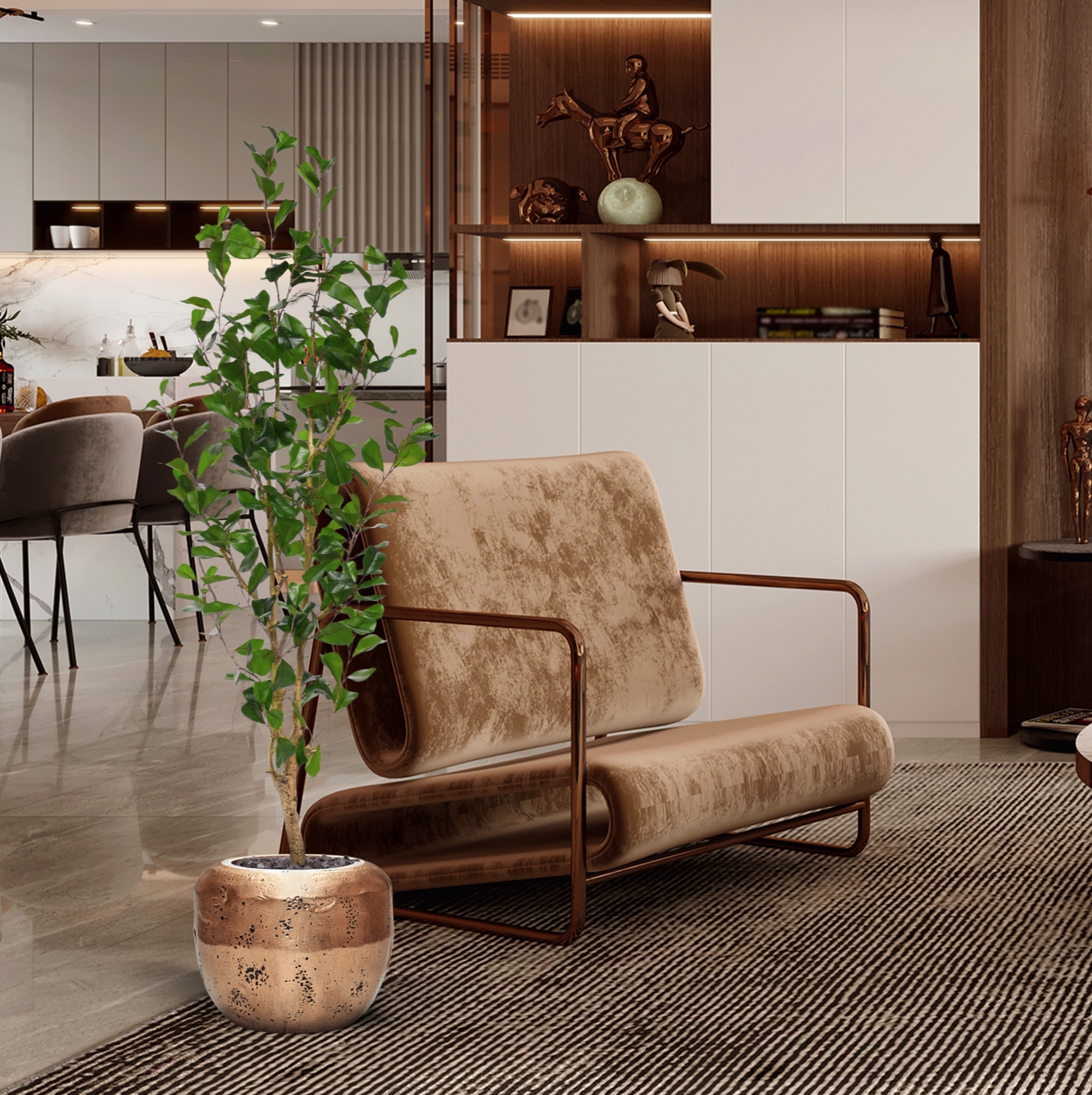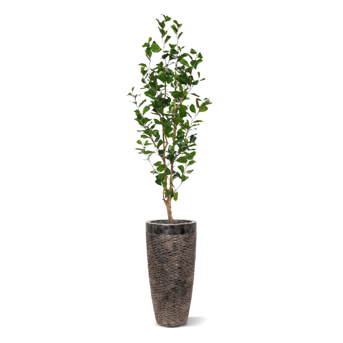 Il Ficus Triangularis artificiale è un'impressionante e pratica aggiunta a spazi ampi. Questa pianta rimane sempre fresca e verde senza manutenzione, perfetta per persone impegnate o per chi non ha il pollice verde. La sua durabilità e forma stabile la rendono ideale per un uso prolungato. Questa pianta si adatta perfettamente in ampi ingressi, hall di hotel, ristoranti, sale riunioni o uffici, aggiungendo immediatamente un'atmosfera esotica e lussuosa. Grazie alla sua natura senza manutenzione, offre un modo elegante e senza preoccupazioni per arricchire e abbellire ogni interno. Inoltre, è adatta alle persone allergiche ed è perfetta per ambienti con poca o nessuna luce naturale.