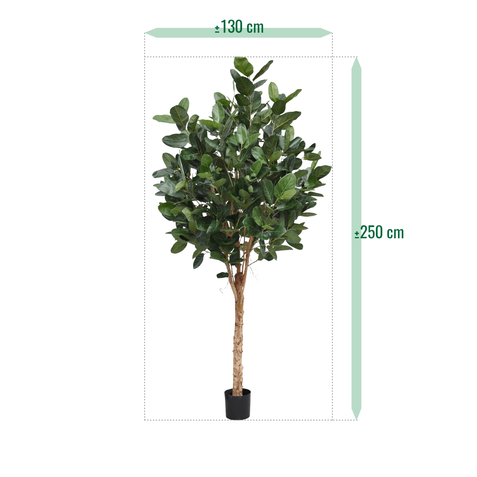 L'Albero Ficus Audrey Artificiale Deluxe 250cm è un'aggiunta impressionante a qualsiasi interno ed è un'esclusiva creazione di BM™ Luxury. Con un'altezza di 250 cm e una larghezza di 130 cm, questo albero artificiale dona immediatamente un tocco fresco e lussuoso a qualsiasi ambiente.