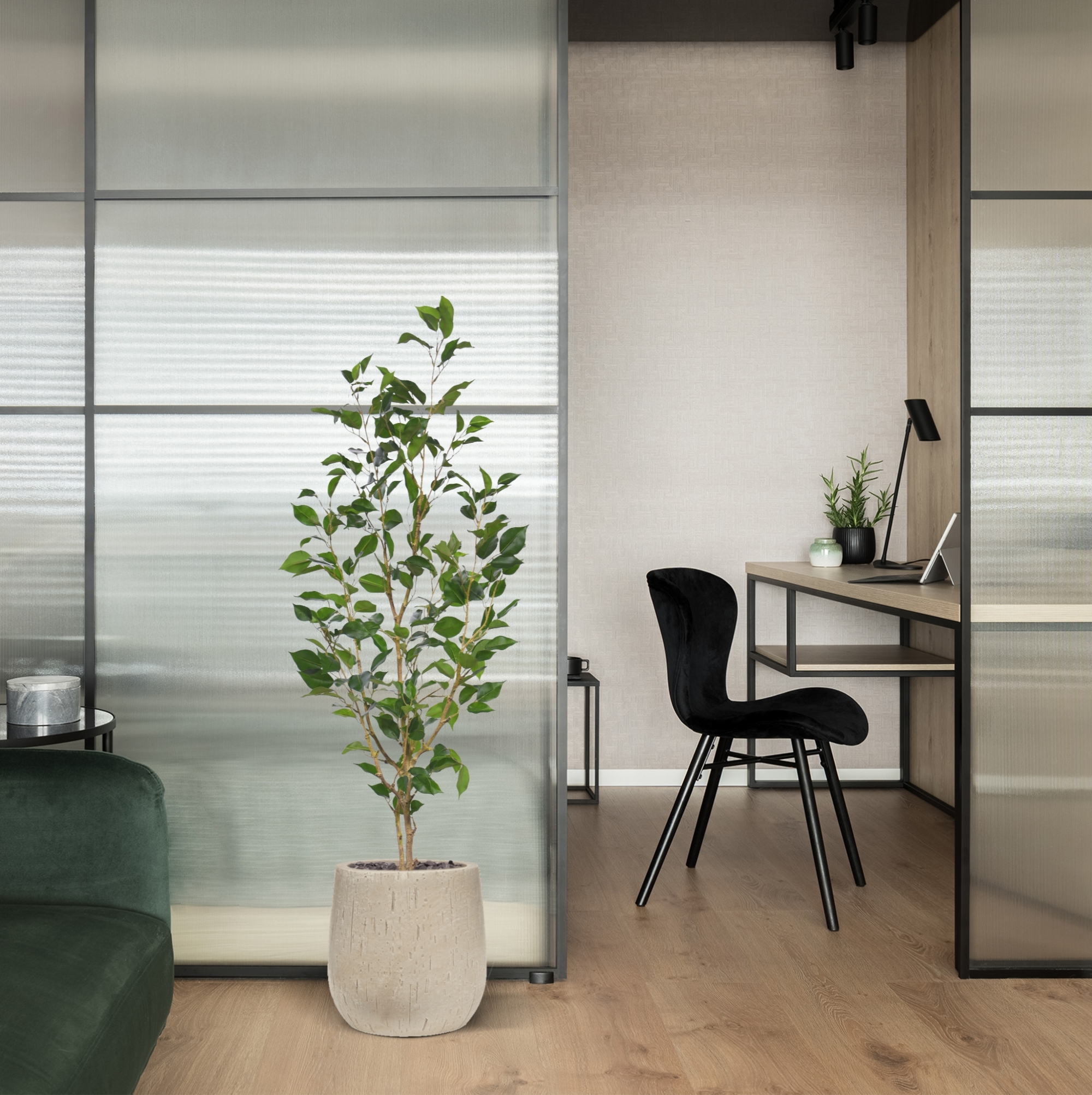 Il Ficus Exotica artificiale è un'aggiunta impressionante e pratica per grandi spazi. Senza bisogno di manutenzione, questa pianta rimane sempre fresca e verde, perfetta per persone occupate o senza il pollice verde. La sua durata e la forma stabile lo rendono ideale per un uso a lungo termine. Questa pianta si adatta perfettamente a grandi ingressi, hall di hotel, ristoranti, sale riunioni o uffici, dove aggiunge immediatamente un'atmosfera naturale e lussuosa. Grazie al suo carattere privo di manutenzione, offre un modo elegante e senza preoccupazioni per arricchire e abbellire ogni interno. Inoltre, è adatto per persone allergiche e perfetto per spazi con poca o nessuna luce naturale.