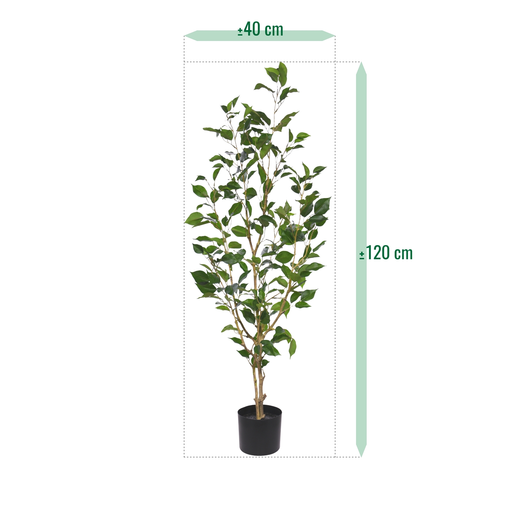 Il Ficus Exotica artificiale è realizzato in modo realistico con foglie dall'aspetto naturale e al tatto naturale, rendendolo difficile da distinguere da uno vero. Questo albero artificiale di 120 cm di altezza emana lusso e qualità, ideale per spazi abitativi