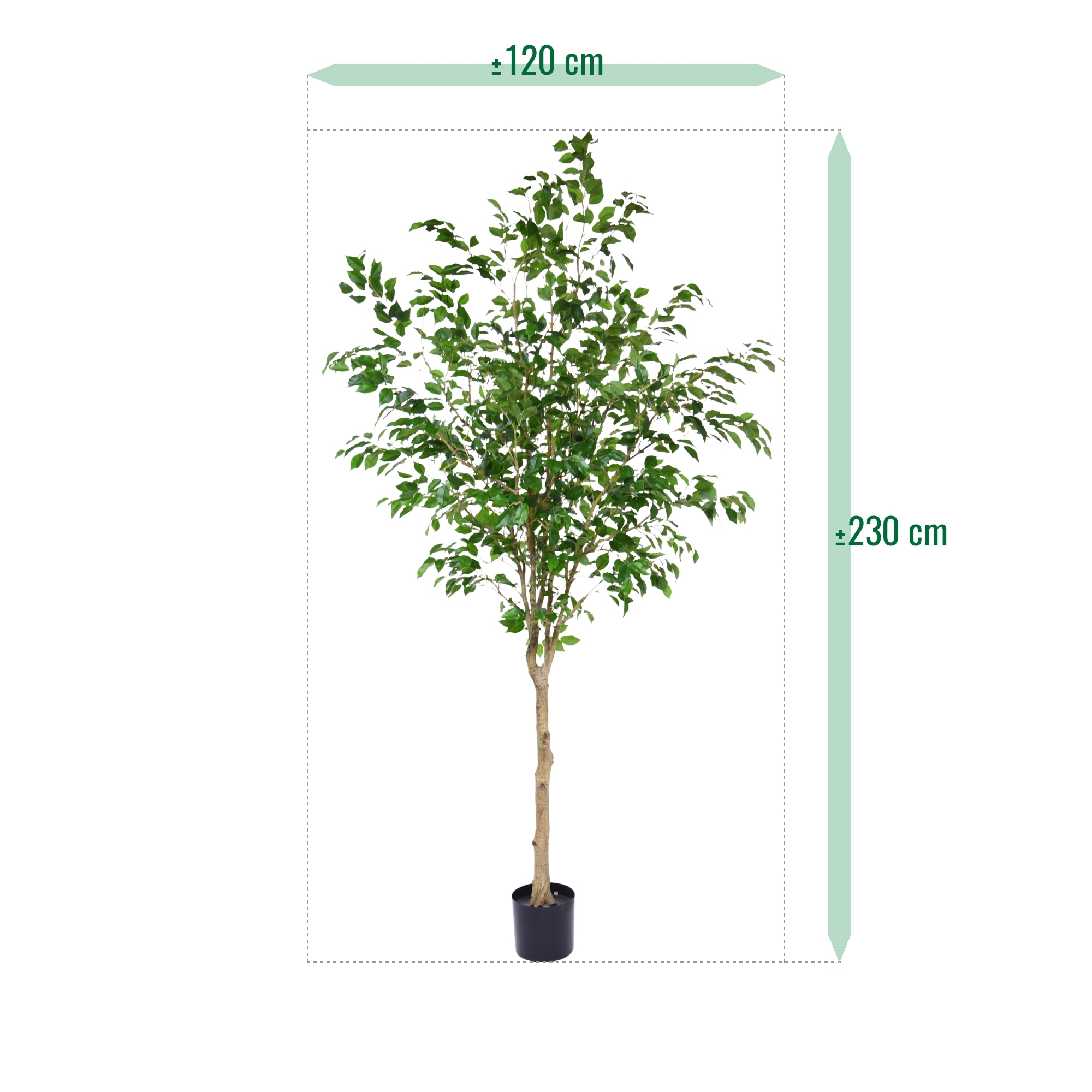 Il Ficus Exotica artificiale in seta è realizzato in modo realistico con foglie piene e di natural touch, rendendolo quasi indistinguibile da uno vero e aggiungendo istantaneamente un tocco di verde! Questo albero artificiale alto 230 cm emana lusso e qualità,