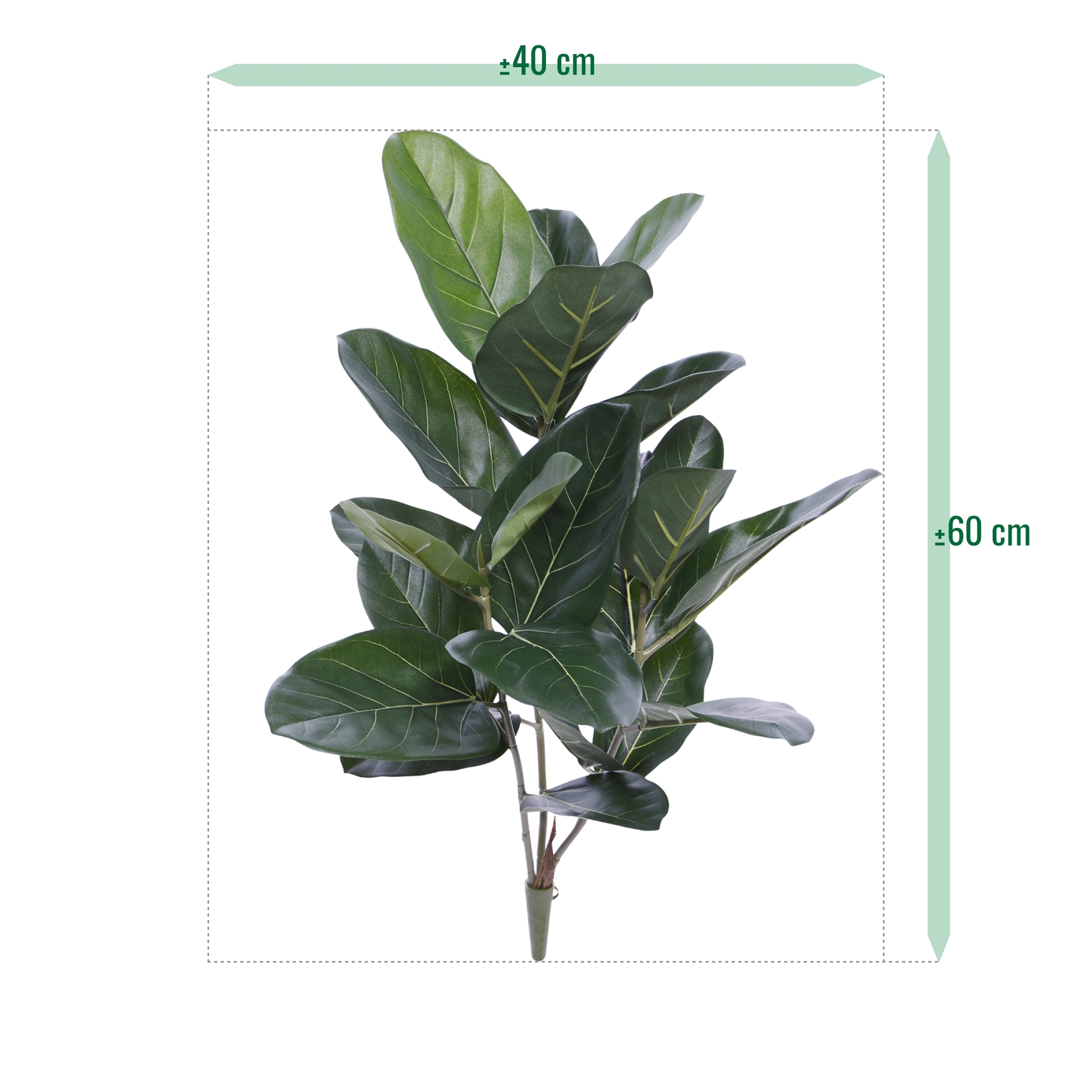 La pianta artificiale di Ficus Audrey è un complemento perfetto per qualsiasi interno, con un'altezza impressionante di 60 cm e una larghezza di 40 cm. Questa splendida pianta artificiale emana un colore verde naturale e vivido, rendendola facilmente visibile