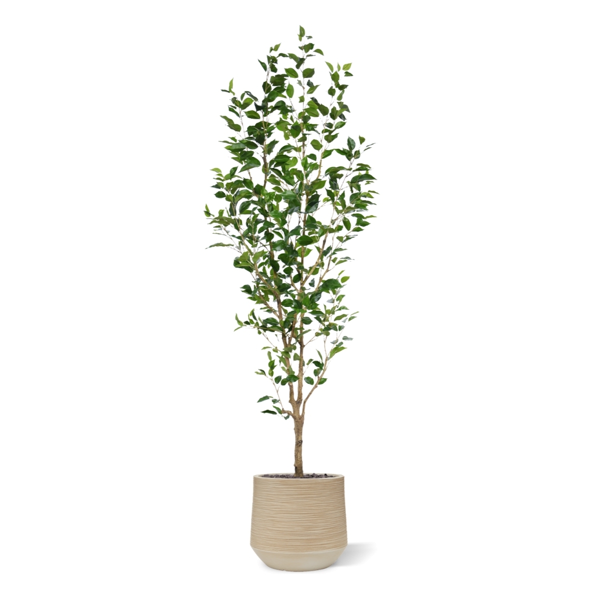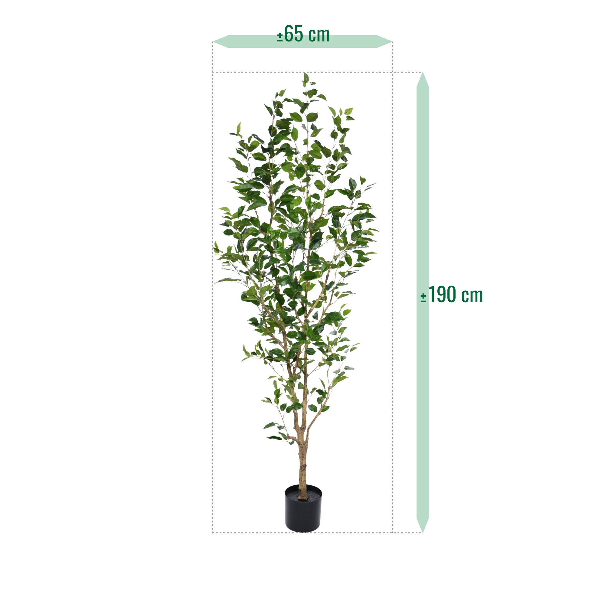 L'albero artificiale Ficus Exotica ha un aspetto raffinato e senza tempo, che lo rende perfetto sia per interni moderni che classici. Le foglie verdi di natural touch sono così realistiche che è quasi impossibile distinguerlo da un albero vero. Questo albero a