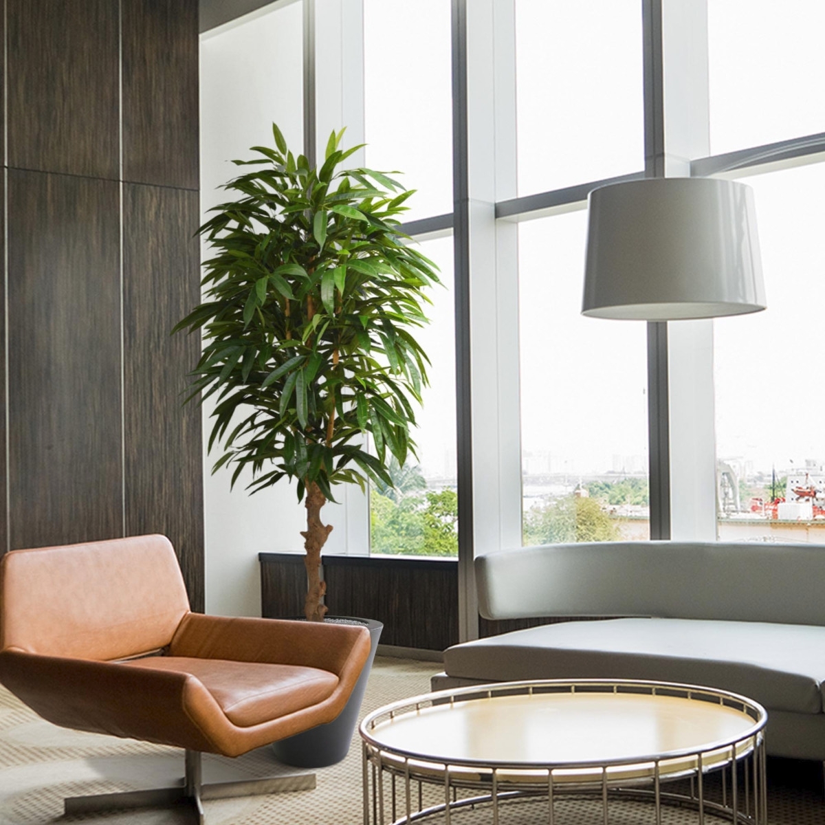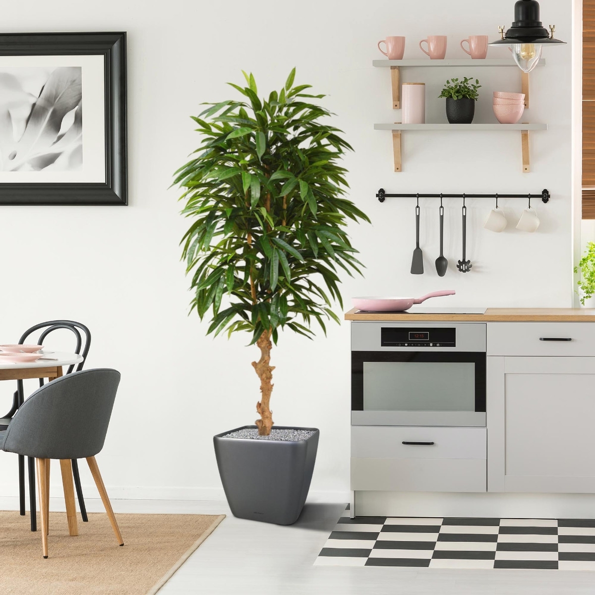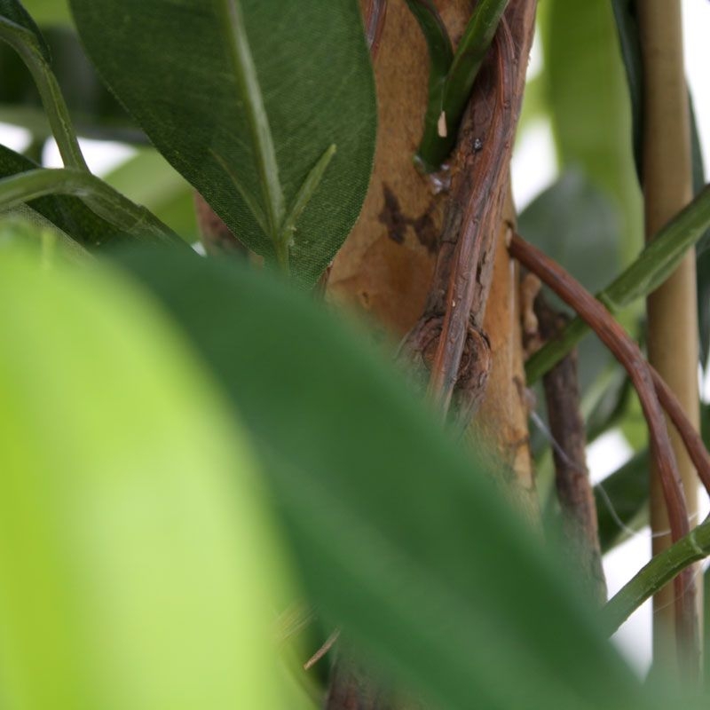 Questo nuovo albero artificiale Ficus Longifolia Royal Deluxe da 165 cm, con le sue lunghe foglie appuntite, si distingue nella famiglia dei ficus. Grazie al suo vero tronco in legno, avvolto da una vite e alle radici aeree imitate, l'albero ha un aspetto molt