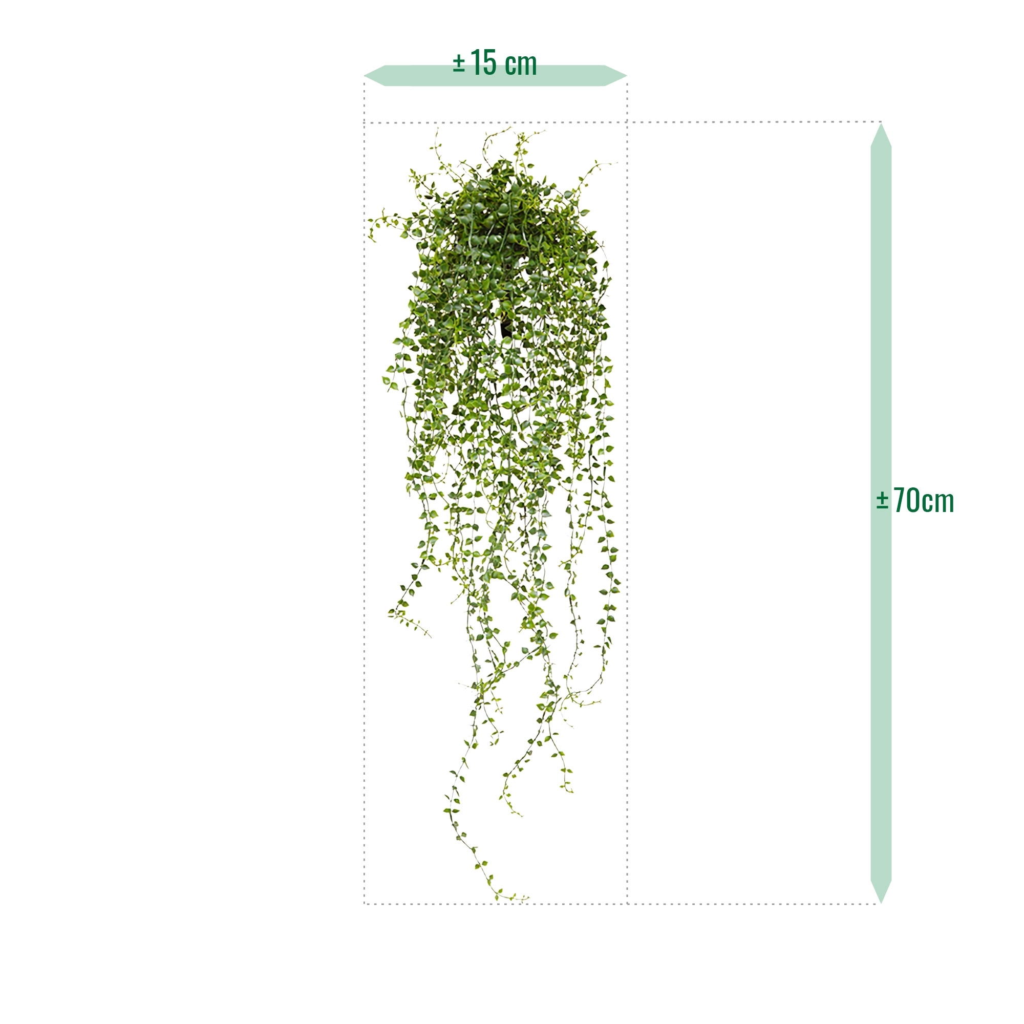 Questa pianta ricadente artificiale Callisia Repens, nota anche come pianta tartaruga, è una pianta ricadente divertente e saltellante che può stare sia su un mobile che essere messa in un vaso. Il pendente artificiale è realizzato interamente in plastica, a c