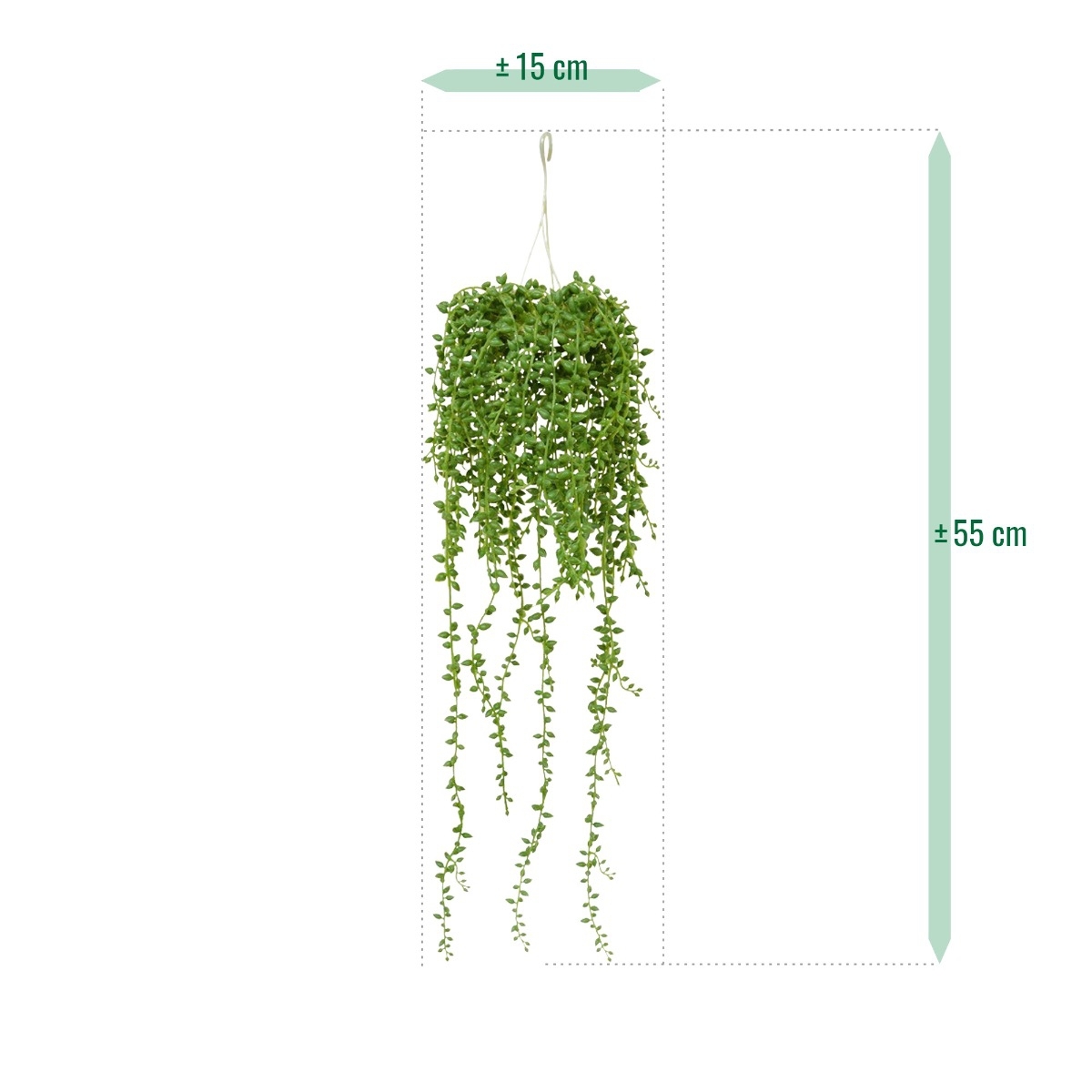 Questa pianta artificiale ricadente Senecio Herrianus, chiamata anche "filo di perle" o pianta di piselli, è una varietà succulenta e una bellissima pianta artificiale decorativa. Questa varietà presenta piccole sfere ovali che pendono in bellissimi fili. La l