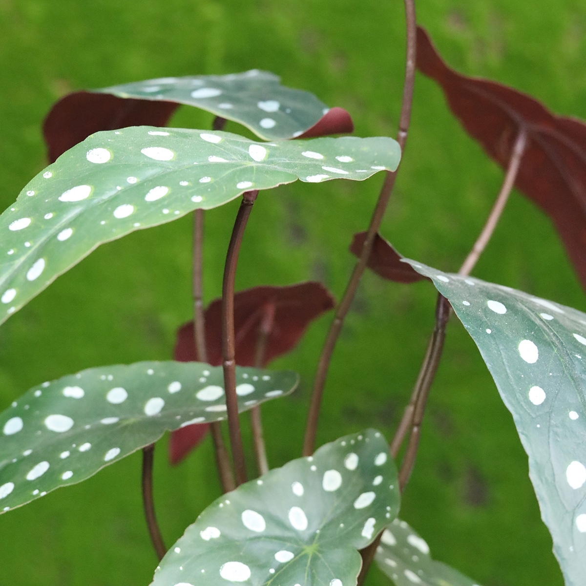 La Begonia Maculata è chiamata anche Begonia trota, Begonia a pois o Begonia a pois. Questa pianta si caratterizza per i puntini bianchi sulla parte superiore della foglia e per la parte inferiore viola/rossa della foglia.