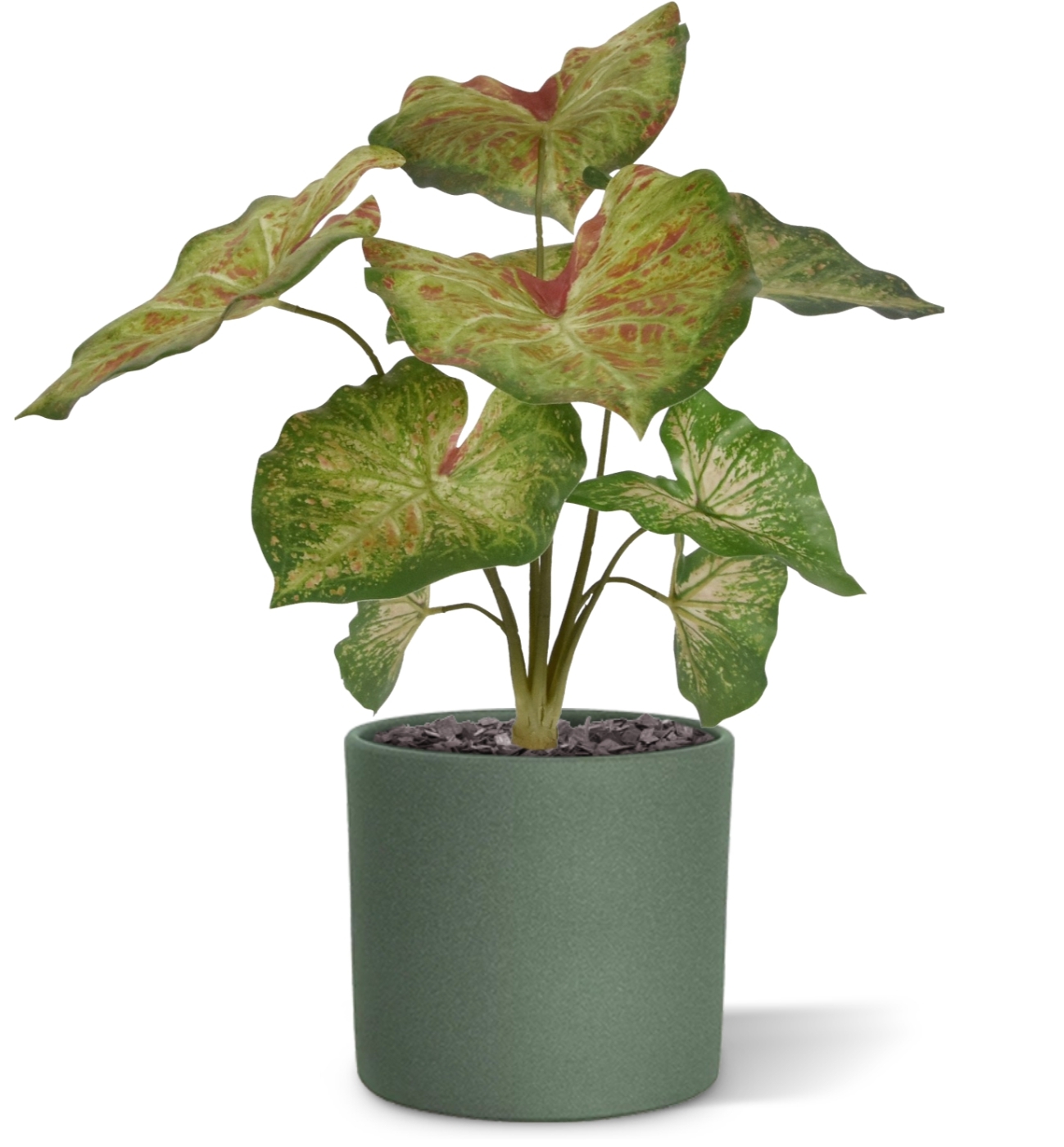 Il bouquet Caladium rasberry si adatta a qualsiasi interno. I colori sono facili da abbinare. Scegliete uno dei nostri vasi per completare l'immagine. Sapete già quale vaso preferite?"