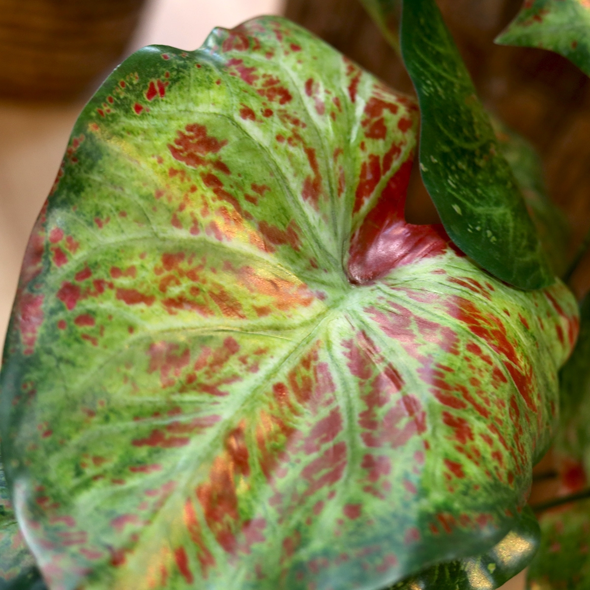 Questo bouquet artificiale è un vero e proprio colpo d'occhio in casa vostra. Grazie al bel colore rosso/rosa in combinazione con le foglie verdi si crea rapidamente un'atmosfera calda.Il bouquet Caladium rasberry si adatta a qualsiasi interno. I colori sono f
