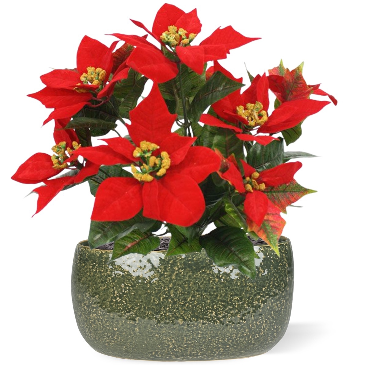 La Poinsettia - chiamata anche Stella di Natale - è una pianta artificiale bella e particolare, che si adatta perfettamente agli interni domestici ma è anche adatta al settore dell'ospitalità e naturalmente non dovrebbe mancare durante il Natale! La struttura