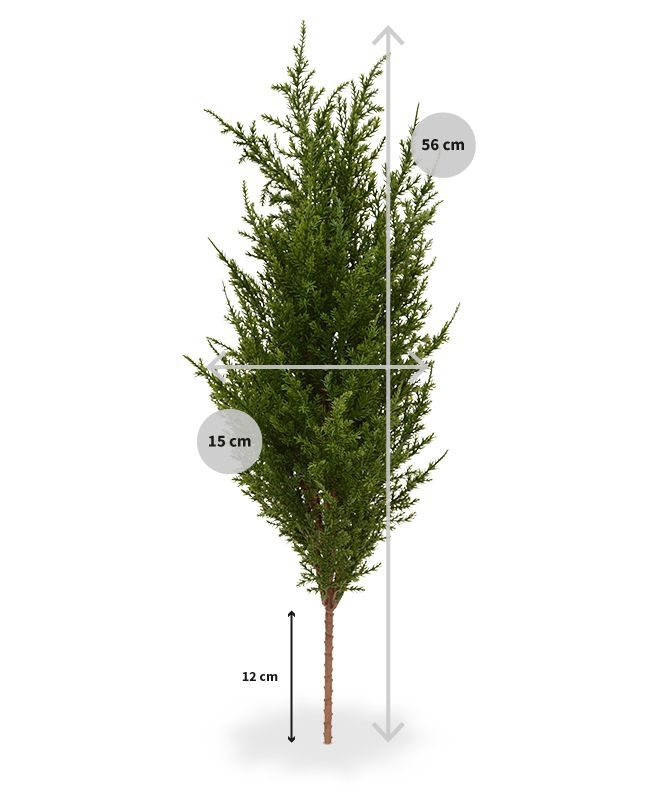 Questo bouquet di cipressi da 56 cm è realizzato in plastica di alta qualità e può essere utilizzato sia all'interno che all'esterno. La replica del ramo di Thuya è un'ottima pianta per decorare l'ingresso o il balcone e si abbina bene a più piante in una fior