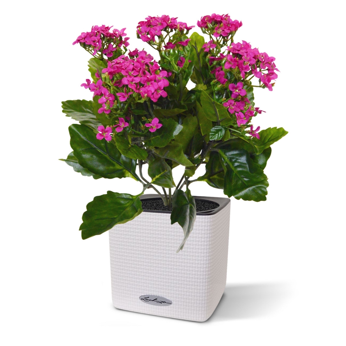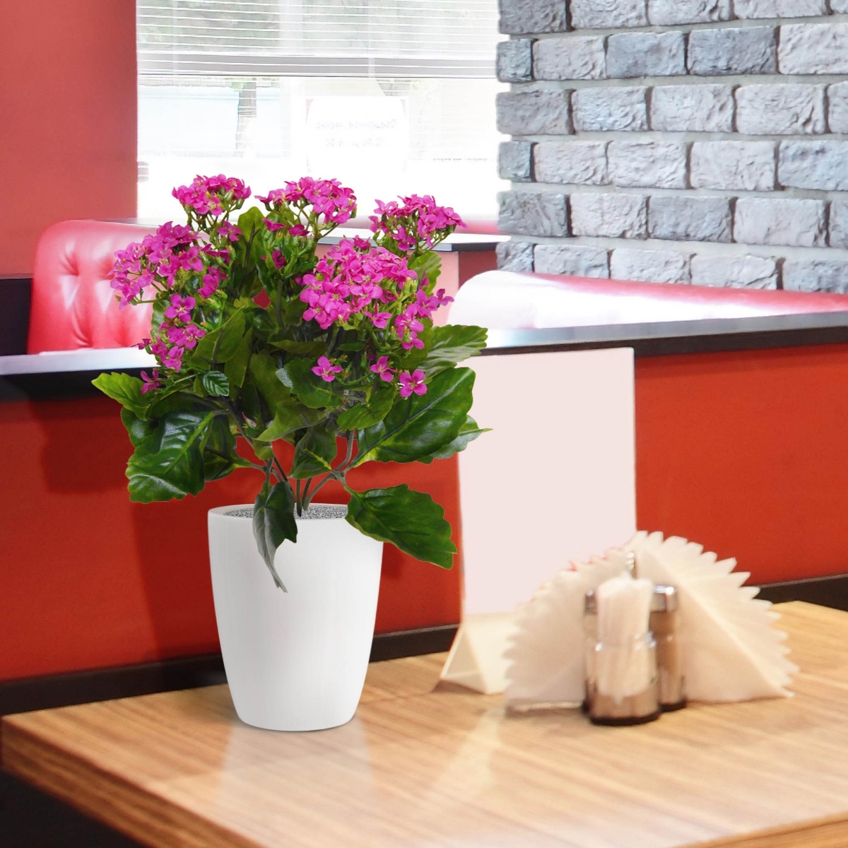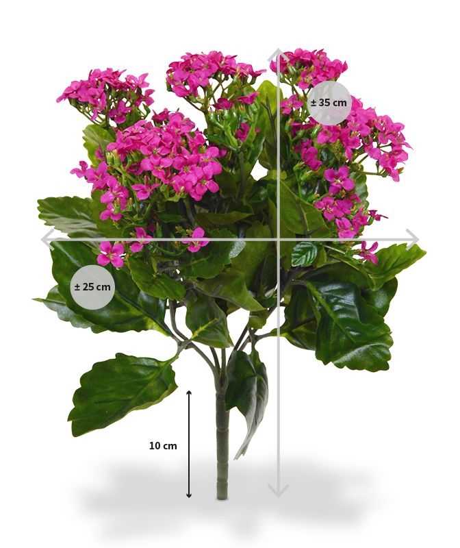 Questo bellissimo bouquet di Kalanchoe in seta, con i suoi tanti piccoli fiori, è una pianta da tavolo decorativa che si trova a suo agio sul davanzale della finestra e nel settore dell'ospitalità. Come pianta singola in un vaso ornamentale o con più piante in