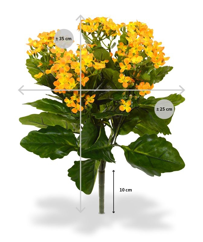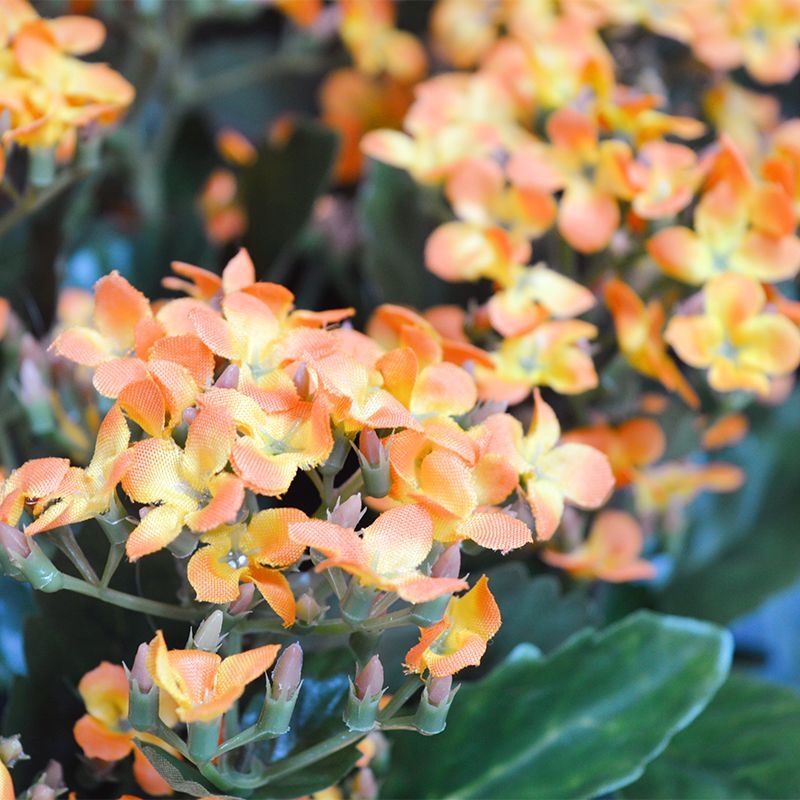 Questo bellissimo bouquet di Kalanchoe in seta, con i suoi tanti piccoli fiori, è una pianta decorativa da tavolo che si trova a suo agio sul davanzale della finestra e nel settore dell'ospitalità. Come pianta singola in un vaso ornamentale o con più piante in