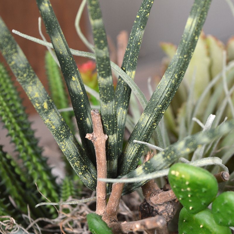 Più piccola non l'abbiamo in assortimento: la mini Sanseveria Cylindrica 20 cm. Le foglie appuntite e rotonde hanno un'impronta naturale e così caratteristica della Sanseveria. La spina artificiale è ampiamente utilizzata nelle composizioni per abbellirle e da