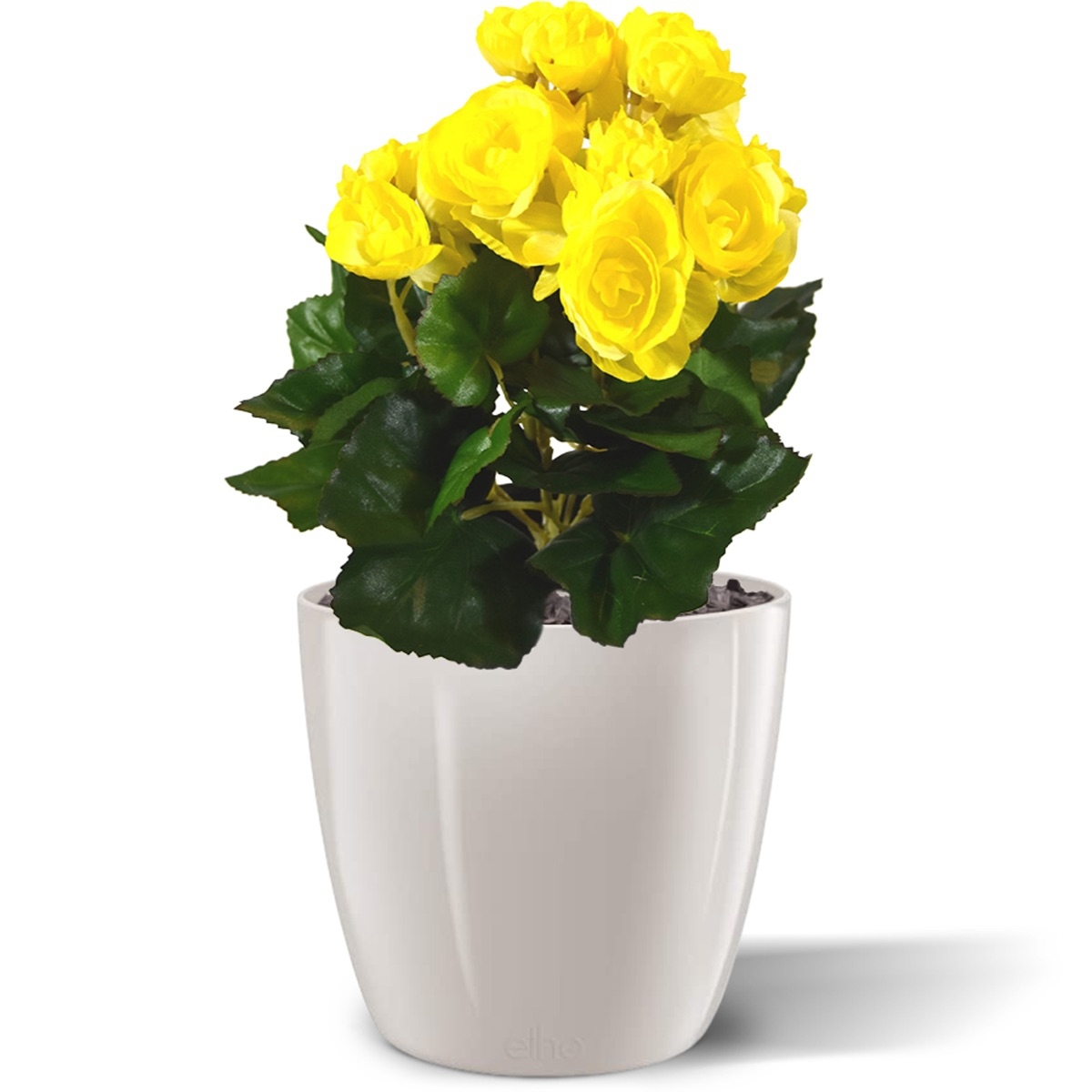 Sempre una delizia con la simpatica Begonia! Soprattutto questo bouquet artificiale in un'allegra tonalità di giallo che, con i suoi numerosi fiori di seta artificiali, si adatta perfettamente al davanzale della finestra, all'ufficio o al settore dell'ospitali