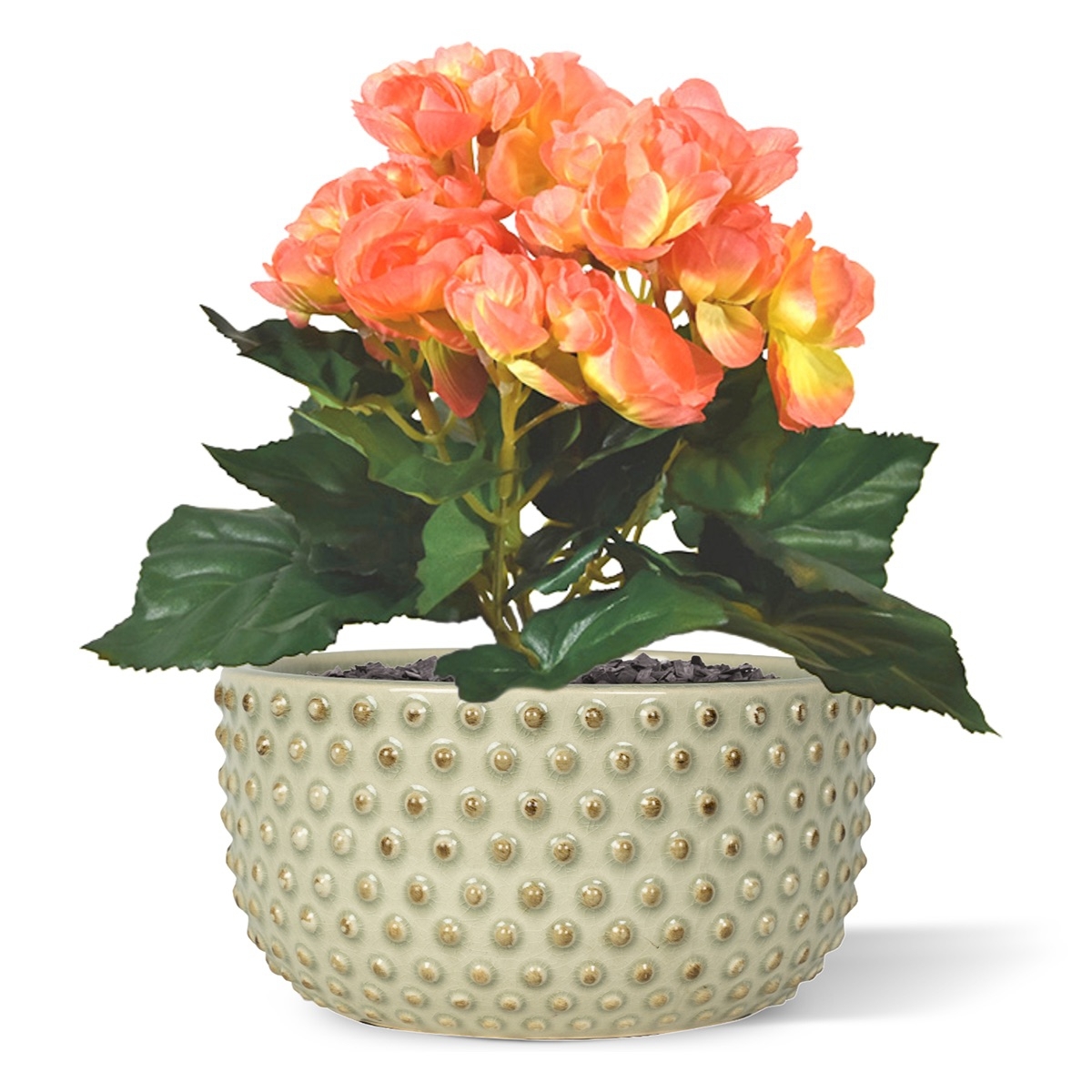 Un bouquet artificiale di Begonia divertente e allegro che sta bene sul tavolo o sul davanzale! Questo frizzante bouquet nel colore di tendenza Salmon è un vero toccasana per la casa o per la ristorazione. Bella da sola in un bel vaso ornamentale o in un conte
