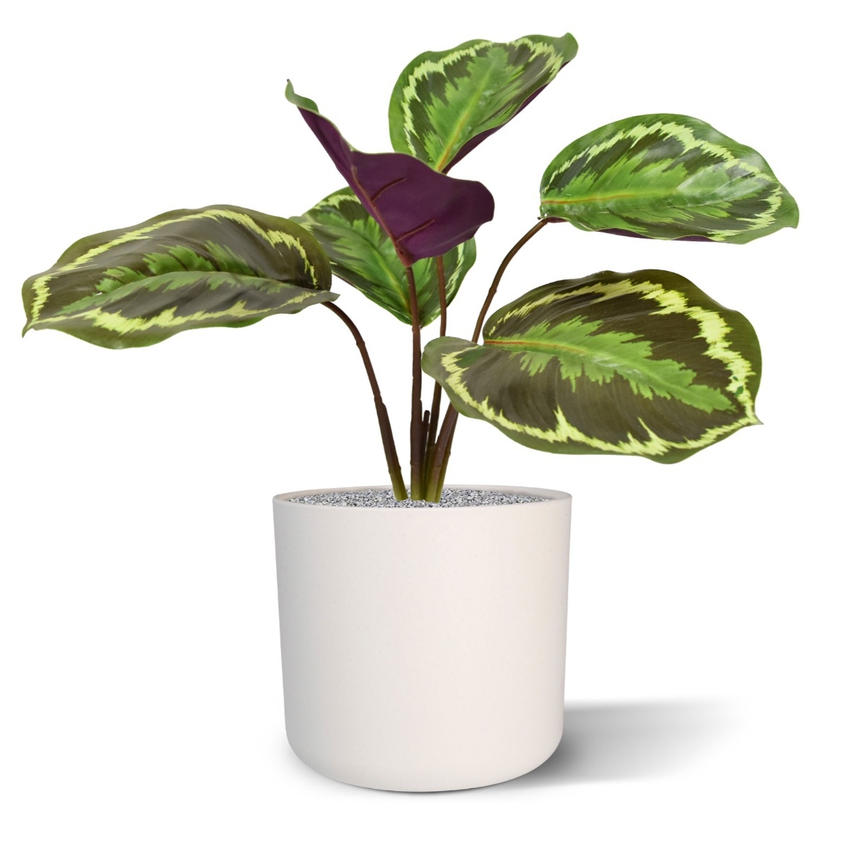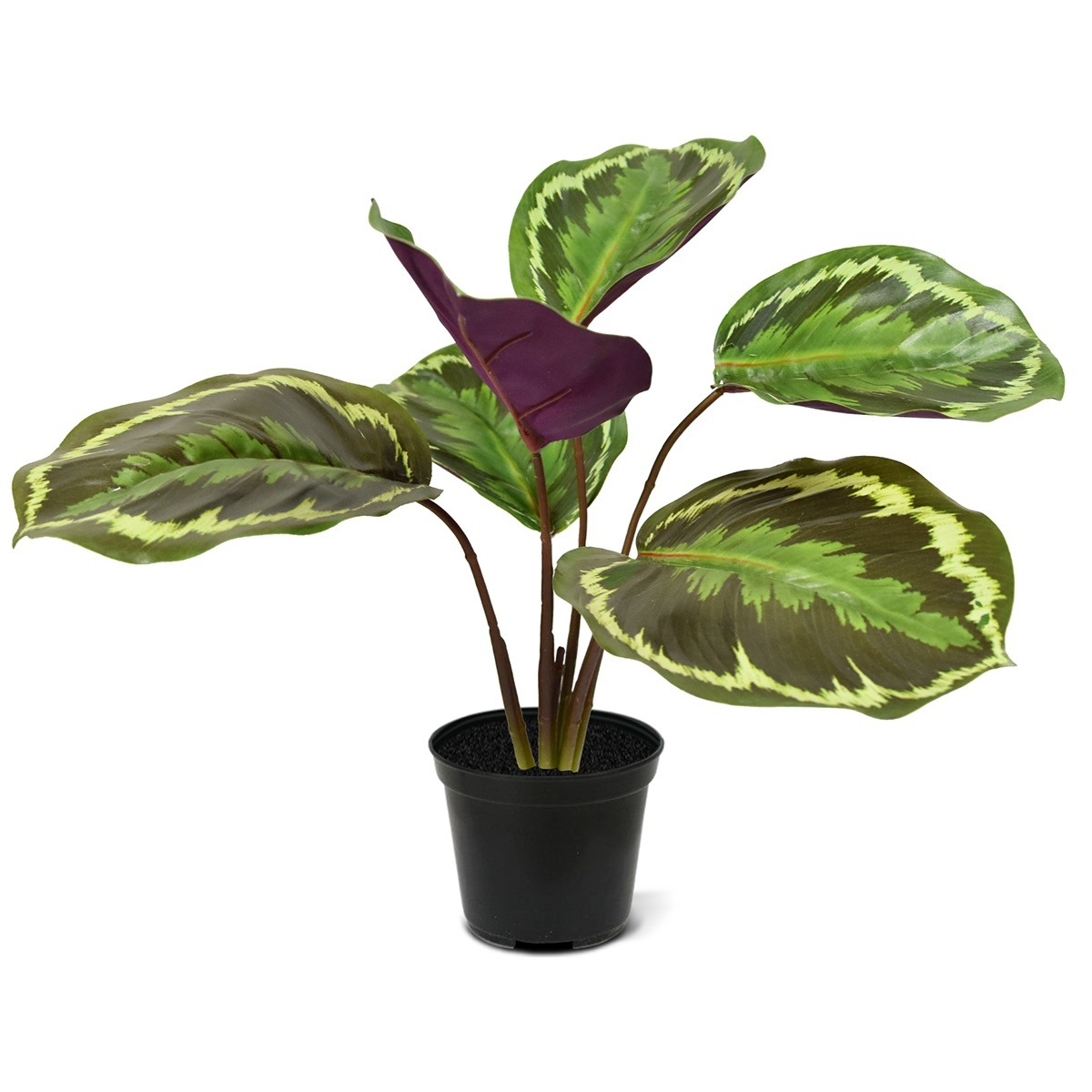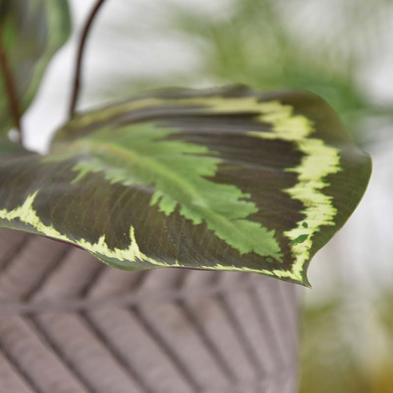 Non vi biasimeremo se guarderete spesso questa Calathea Ornata in forma di bouquet dal basso. Ad essere sinceri, anche noi non sappiamo quale sia il lato più attraente delle foglie splendidamente ricreate di questo bouquet. Dove può questo attraente bouquet ar
