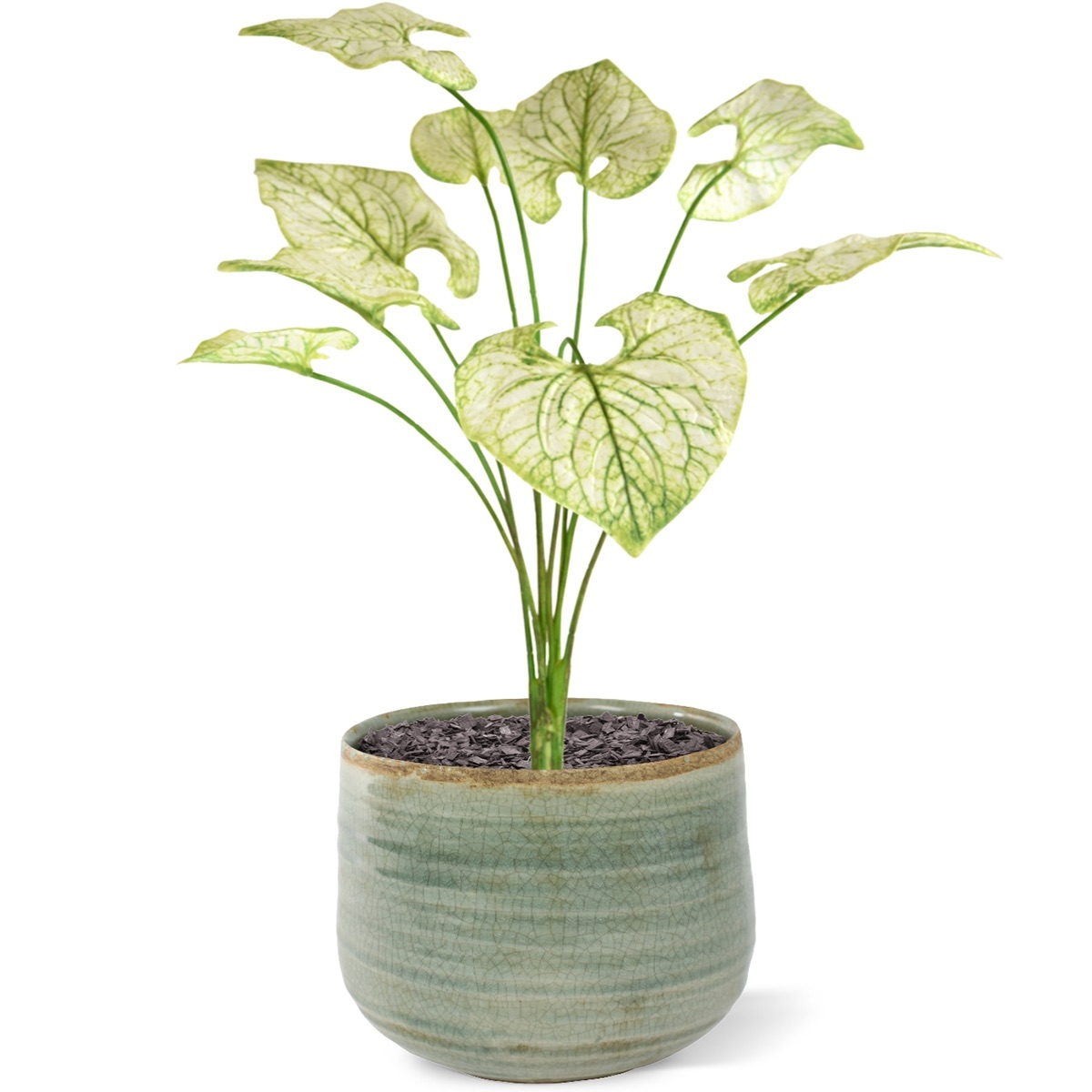 Se volete qualcosa di diverso dall'ordinario, questo è il bouquet giusto. Il bel colore verde crema della pianta artificiale illuminerà i vostri interni. Le foglie color crema hanno venature verdi. Abbinate il bouquet a uno dei nostri bellissimi vasi per piant