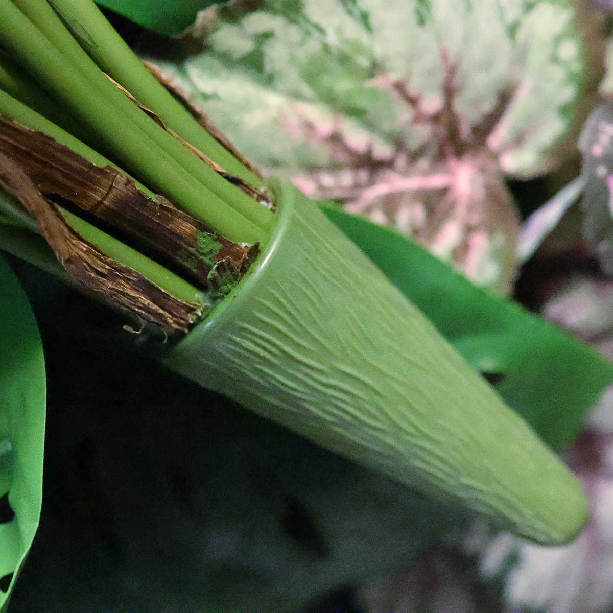 Grazie al pratico supporto, la pianta può essere facilmente posizionata in un vaso decorativo. Il supporto stabile assicura che la pianta rimanga perfettamente in piedi, mentre le foglie vibranti e disegnate le conferiscono un aspetto naturale. Questa pianta artificiale è ideale per soggiorni, uffici o qualsiasi altro spazio che necessiti di un tocco di fascino tropicale, senza preoccupazioni per le esigenze di luce o cura.