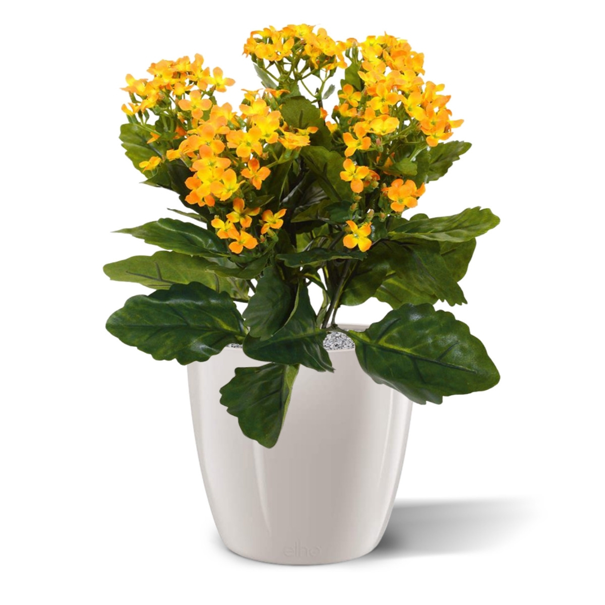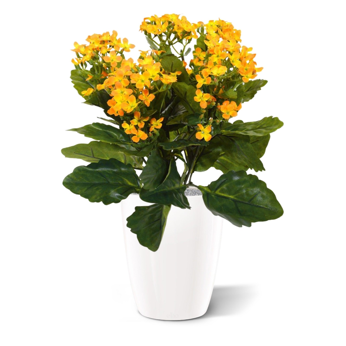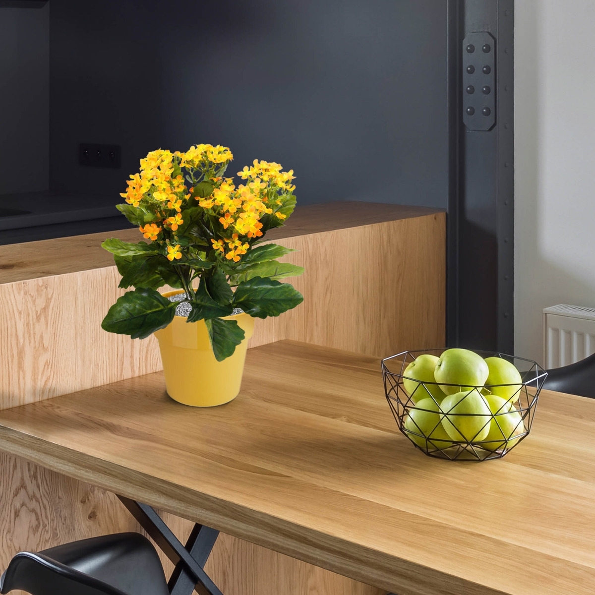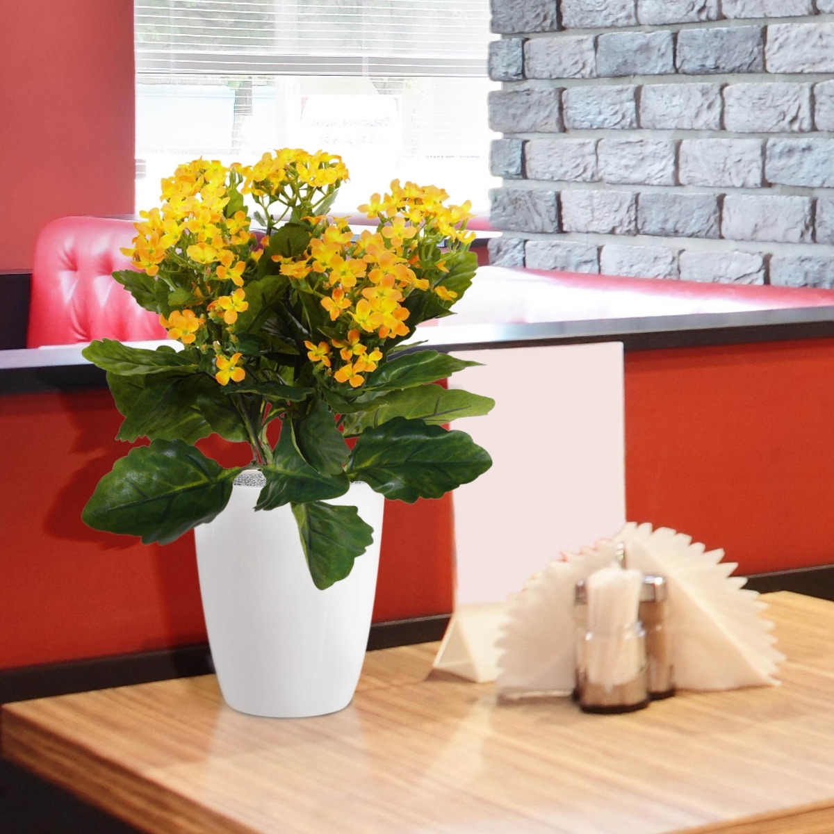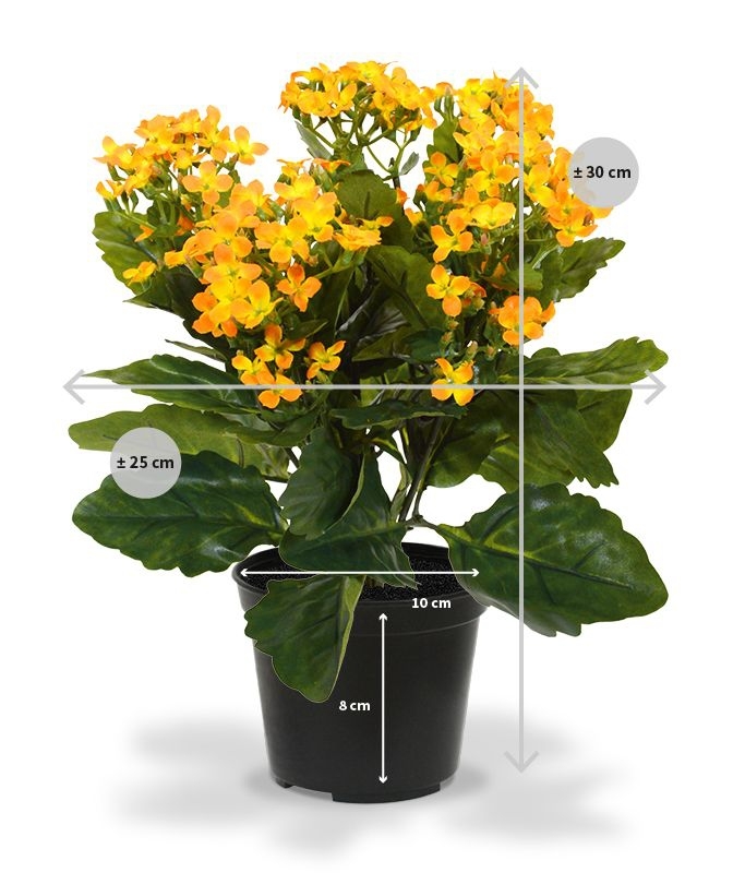 Con i suoi tanti piccoli fiori, questa bellissima pianta artificiale di Kalanchoe in seta è una pianta decorativa da tavolo che si trova a suo agio sul davanzale della finestra e nel settore dell'ospitalità. Come pianta singola in un vaso ornamentale o con div