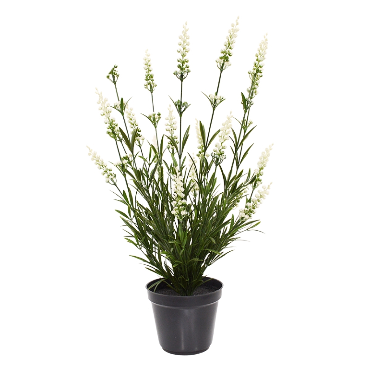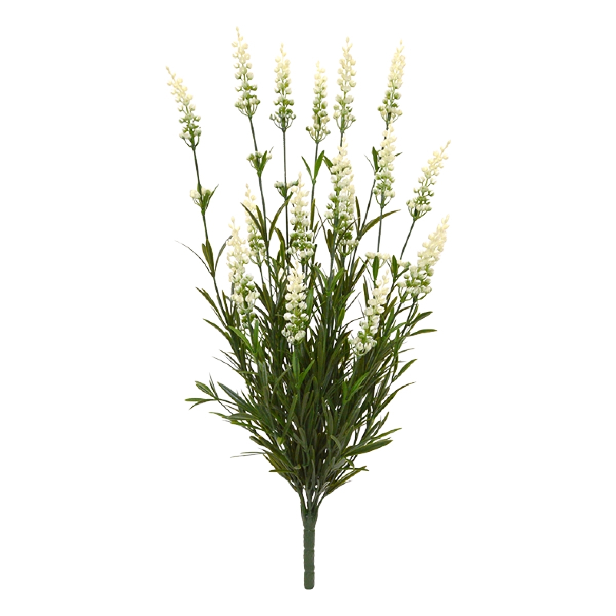 Questo bouquet di lavanda in plastica bianca resistente ai raggi UV da 50 cm, con i suoi numerosi e bellissimi fiori, è una pianta da tavola decorativa che ama mostrarsi sul davanzale di casa, ma è anche molto decorativa in terrazza nei locali di ristorazione.