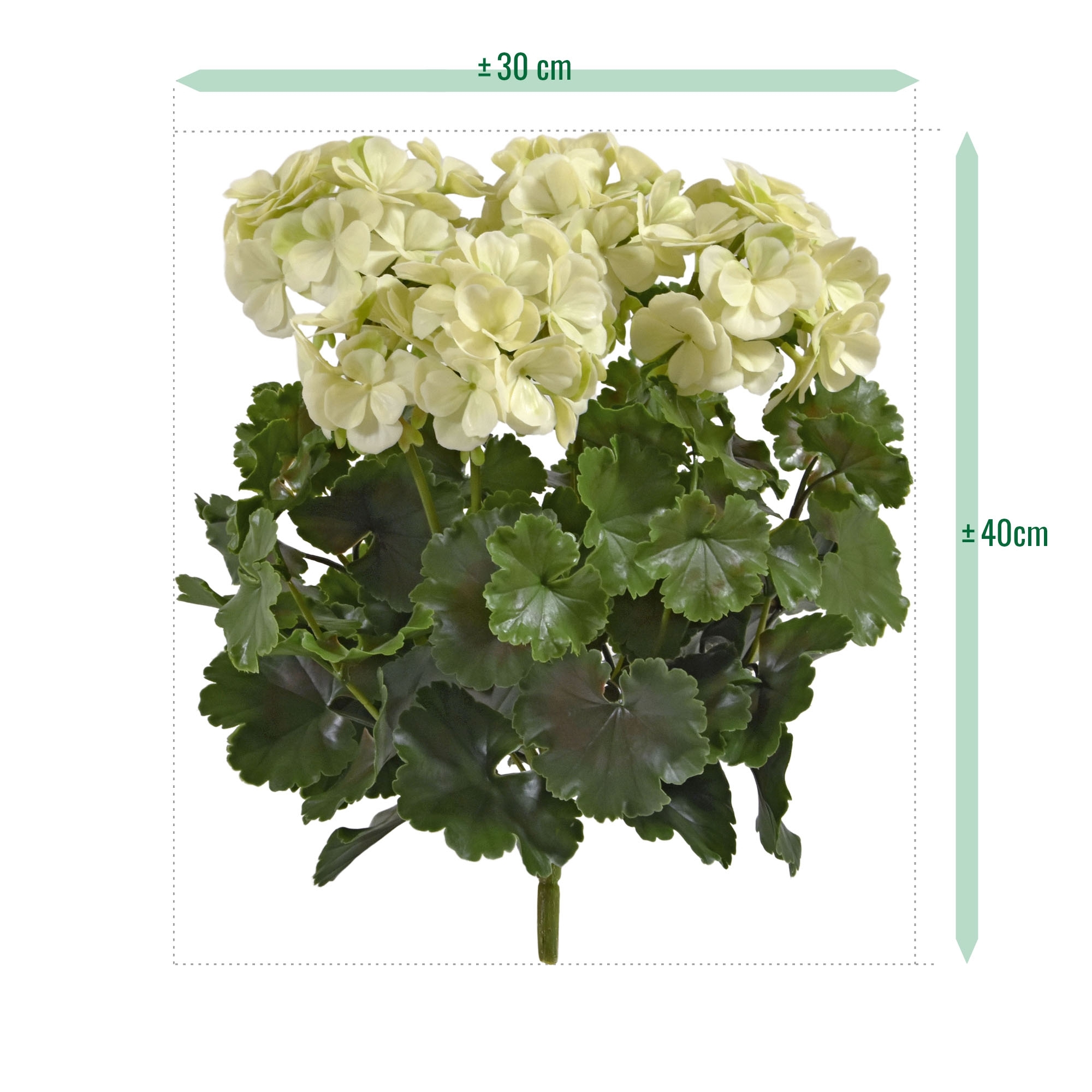Con questi bellissimi gerani artistici, probabilmente non vi dispiacerà affatto sedervi davanti a loro! Potrebbero avere un'immagine negativa, ma con questi gerani color crema, lo darete sicuramente per scontato. Inoltre, sono anche resistenti ai raggi UV, il che significa che potrete posizionare i fiori sul balcone o sul salotto in giardino in tutta tranquillità, senza temere che i fiori artificiali si scoloriscano. Preferite combinare? Allora