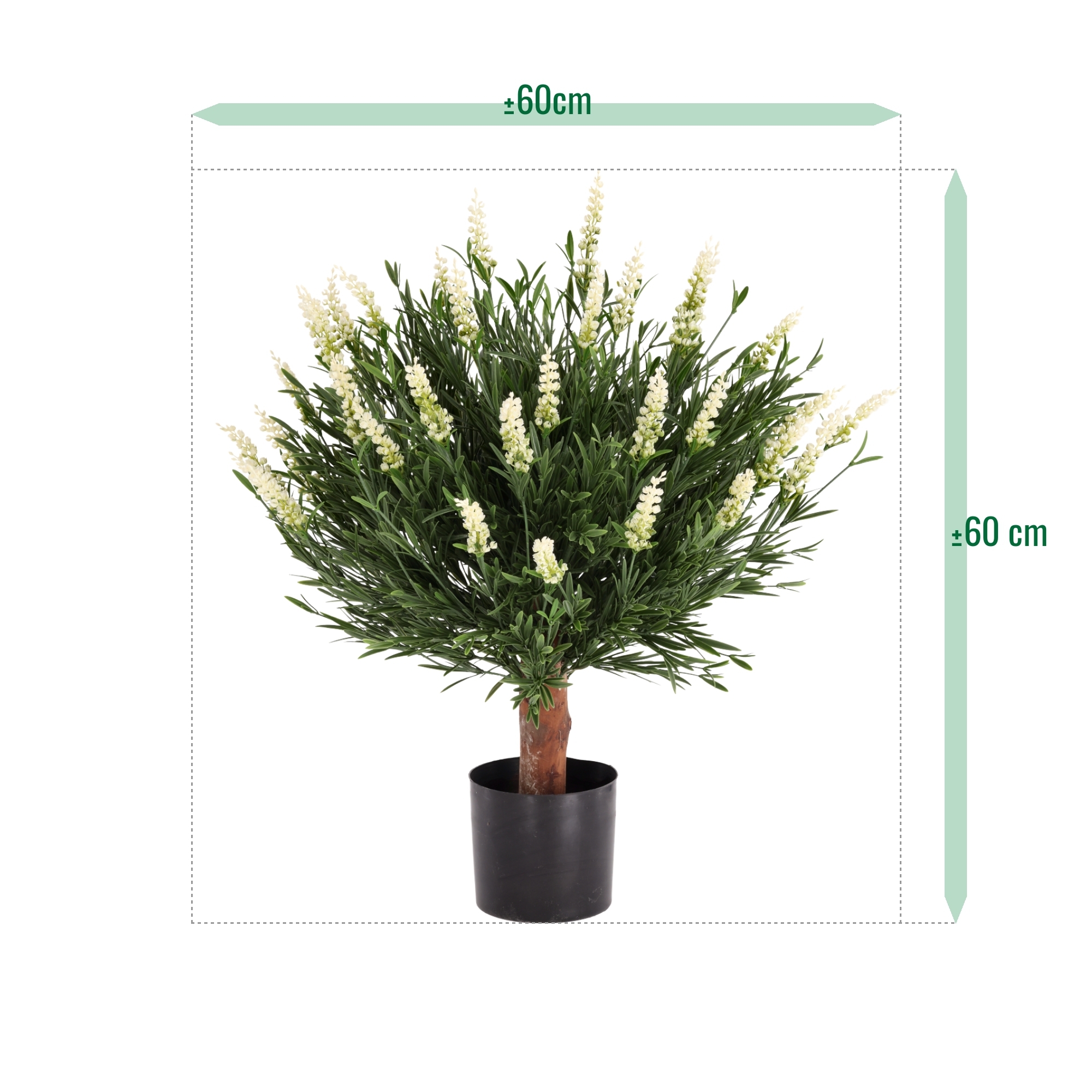 La Piantа Artificiale Lavanda Sfera UV Bianca 60cm è una scelta elegante e decorativa per qualsiasi area esterna. Con un’altezza di 60 cm e un diametro di 60 cm, questa lavanda artificiale per esterni dona immediatamente un tocco fresco e rilassante a terrazzi, balconi, patio e ingressi. I delicati grappoli di fiori bianchi e il fogliame compatto creano un aspetto naturale e realistico. Il fusto in vero legno conferisce autenticità e una finitura di alta qualità. Questa lavanda artificiale bianca si abbina perfettamente a contesti mediterranei, rustici e moderni.