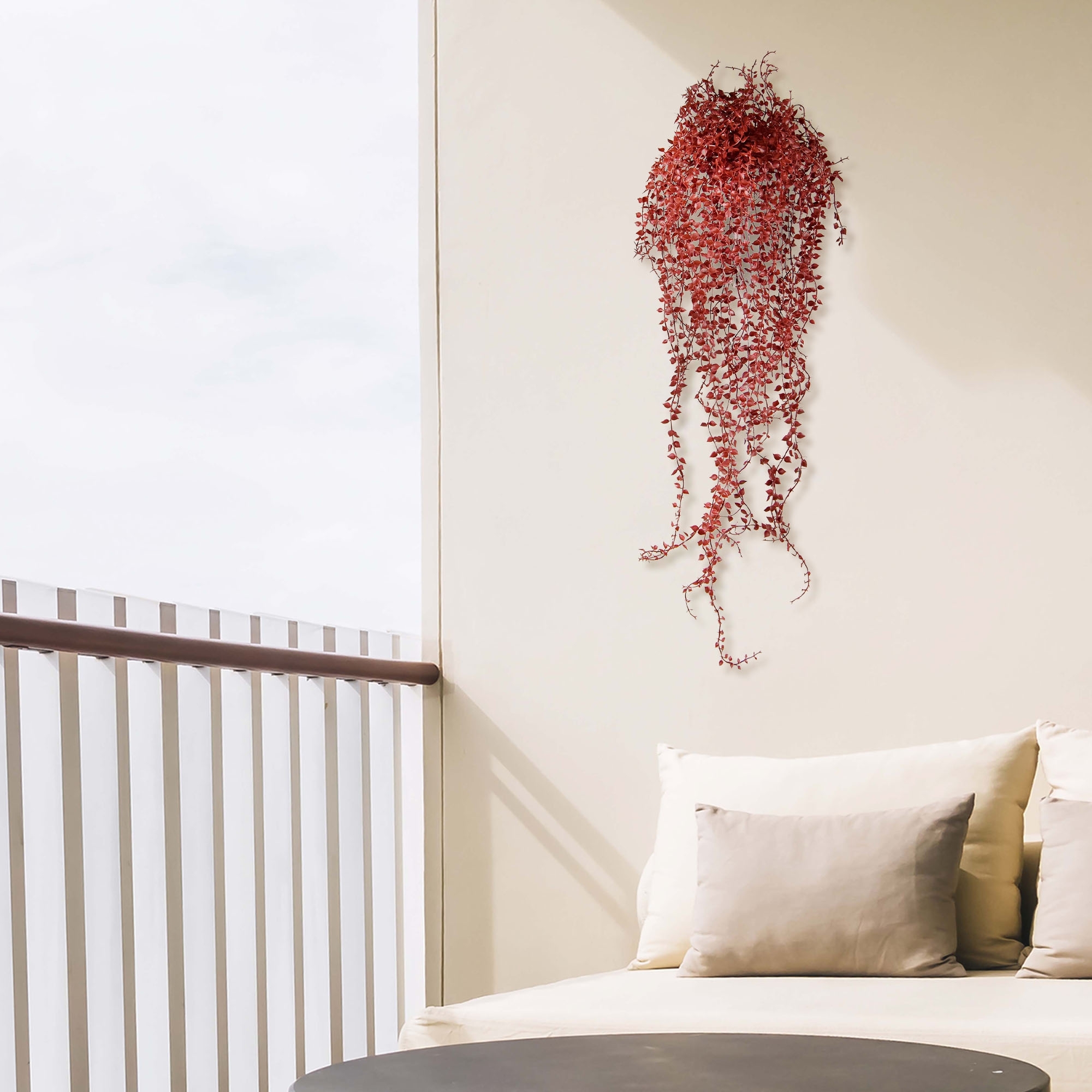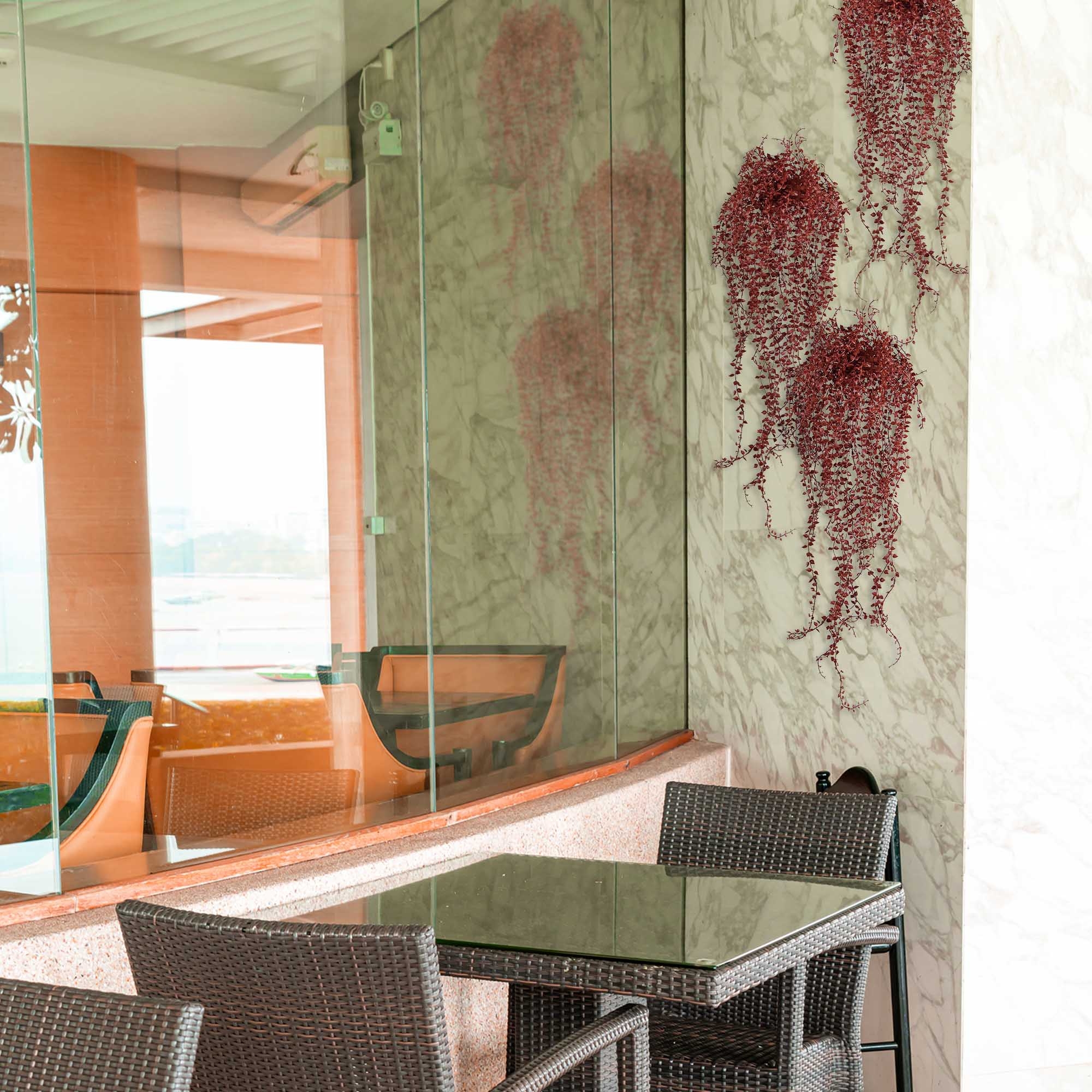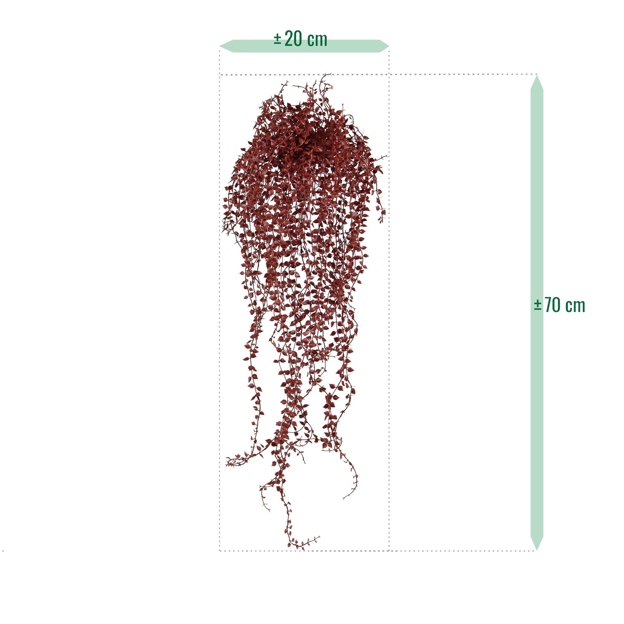 Questa pianta rampicante artificiale Callisia Repens di colore bordeaux, nota anche come vite della tartaruga, è una pianta pendente allegra e vivace che può stare su una credenza o essere messa in un vaso.La pianta finta è interamente realizzata in plastica,