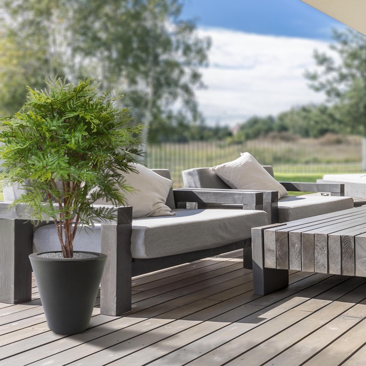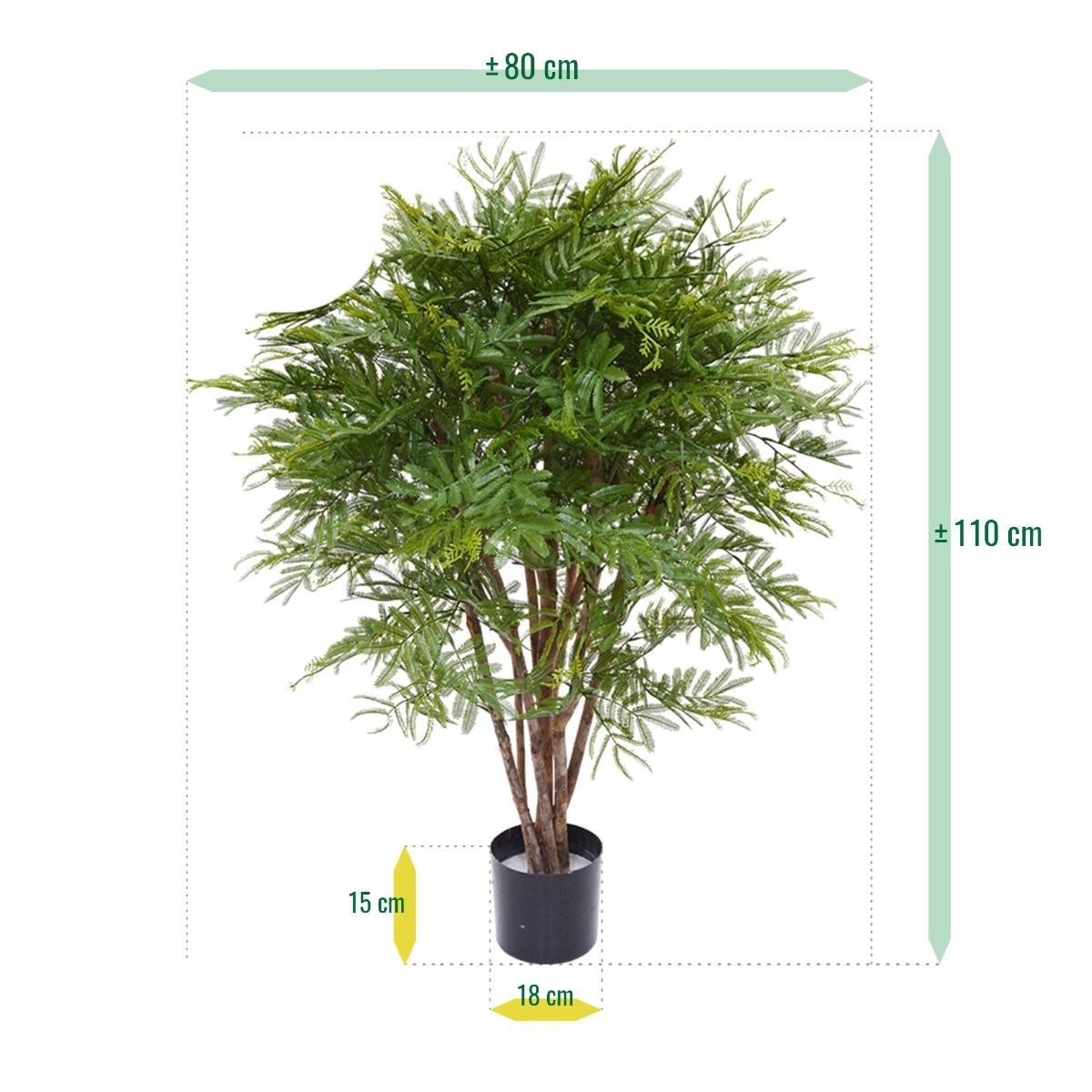 Godetevi una pianta artificiale di Mimosa unica e molto fedele alla natura 110 cm UV per esterni? Portate la vostra mimosa in giardino e regalate ai vostri visitatori una pianta speciale e resistente alla luce del sole, indistinguibile da quella vera. Grazie a