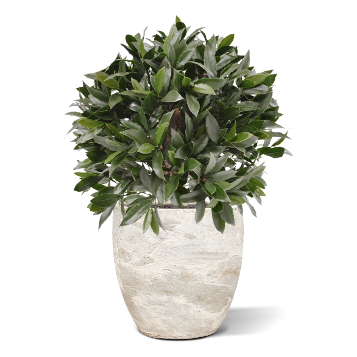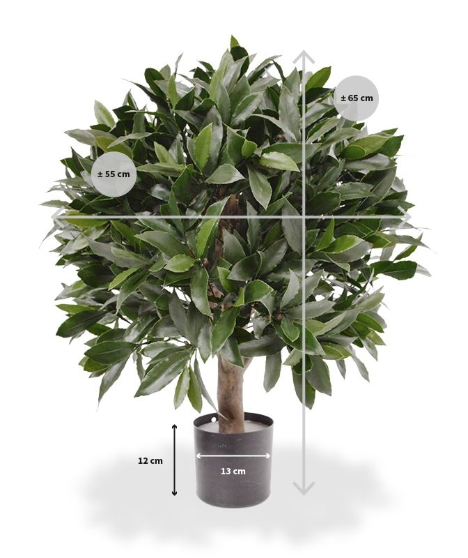 Il diametro del bulbo è di 55-60 cm, ma è disponibile anche in altre dimensioni e varietà. Questa pianta viene fornita di serie in un vaso di plastica, che misura 12 cm di altezza e 13 cm di larghezza ed è dotato di un'imbottitura incollata in modo permanente. Ciò consente di collocare facilmente il bulbo di alloro in un vaso ornamentale. È possibile ordinarlo direttamente insieme alla pianta.