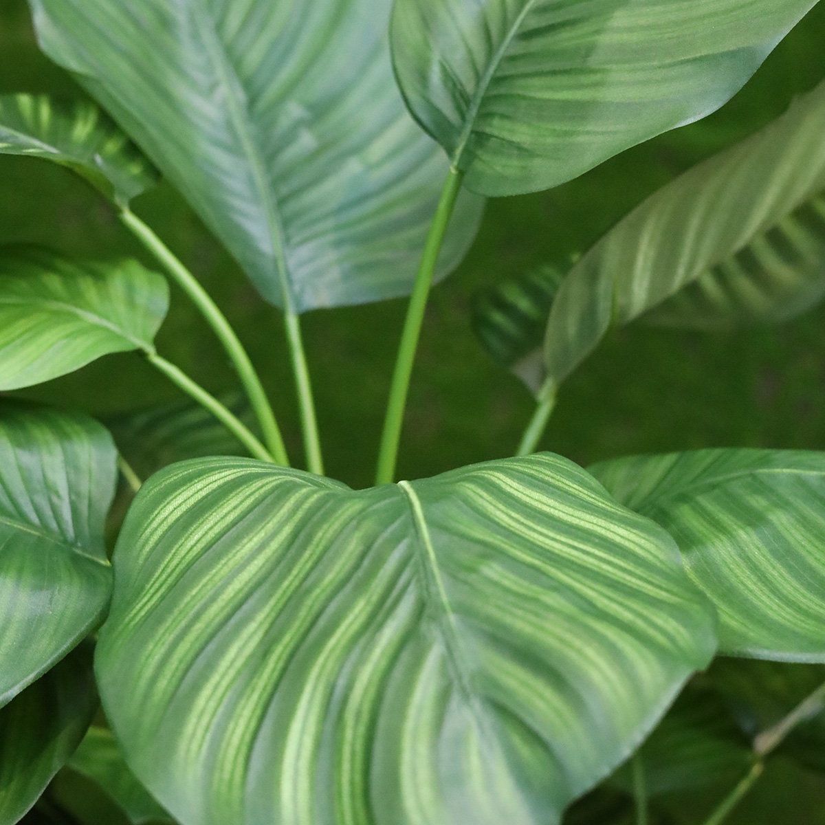 I dettagli delle foglie e la forma di crescita naturale conferiscono a questa pianta artificiale un aspetto realistico. Se volete aggiungere un po' di verde all'ufficio, al soggiorno o alla camera da letto, questa Calathea Fasciata si adatta perfettamente a qualsiasi stile e aggiunge un tocco di tranquillità ed eleganza all'ambiente circostante. Godetevi la bellezza della natura senza preoccuparvi dell'irrigazione o della luce solare. Create un'oasi verde nella vostra casa con questa bellissima pianta artificiale Calathea Fasciata Deluxe.