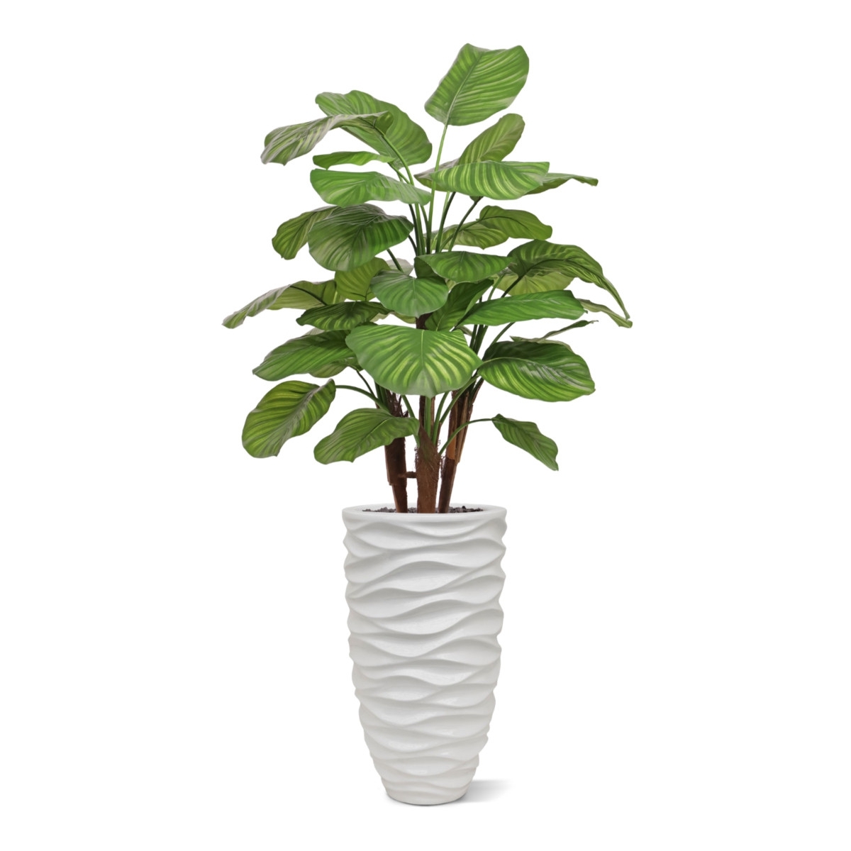 Portate lo splendore della natura in casa vostra con la nostra pianta artificiale Calathea Fasciata Deluxe, alta 110 cm e larga 75 cm. Questa pianta artificiale rigogliosa e realistica aggiunge un tocco di verde a qualsiasi ambiente, senza il problema della ma