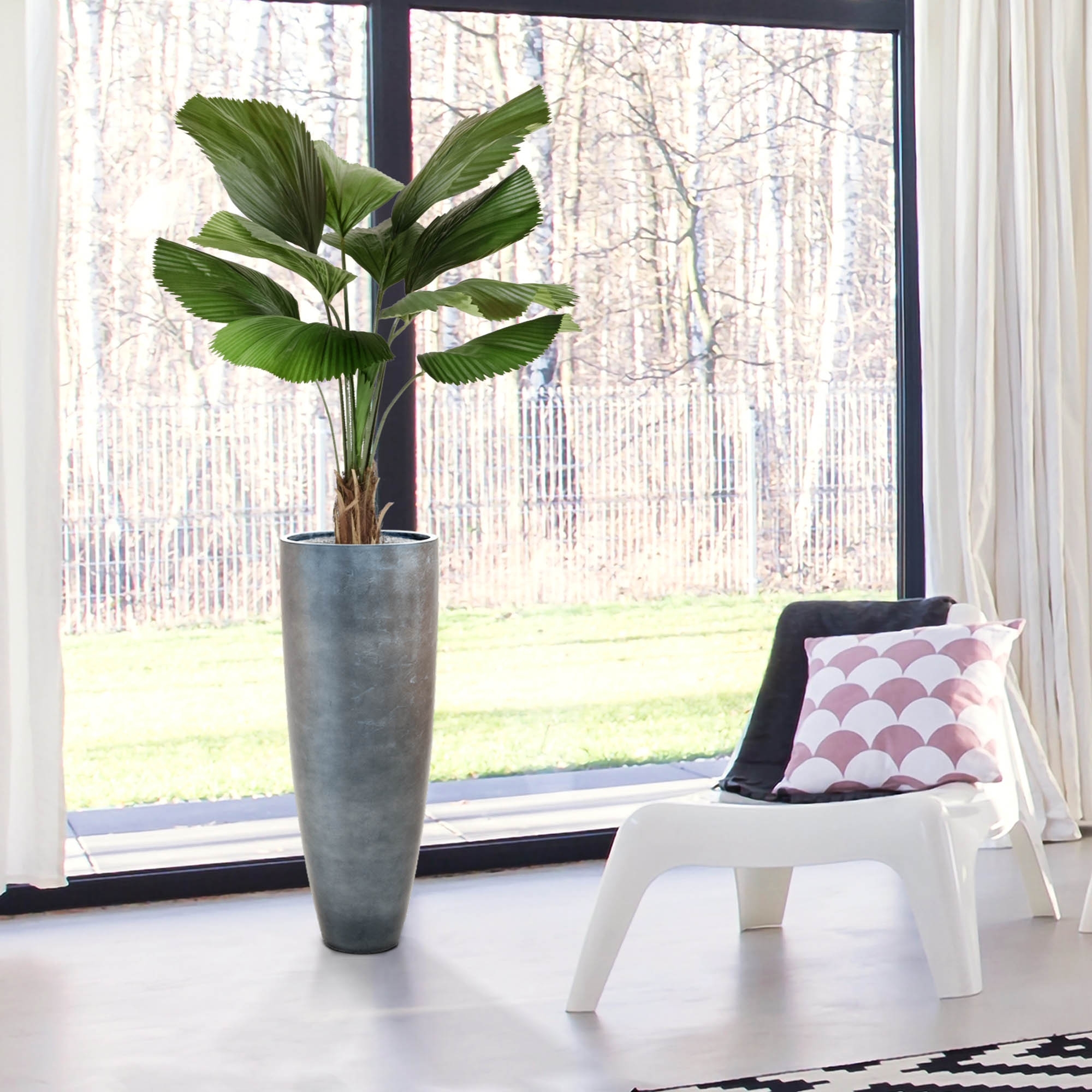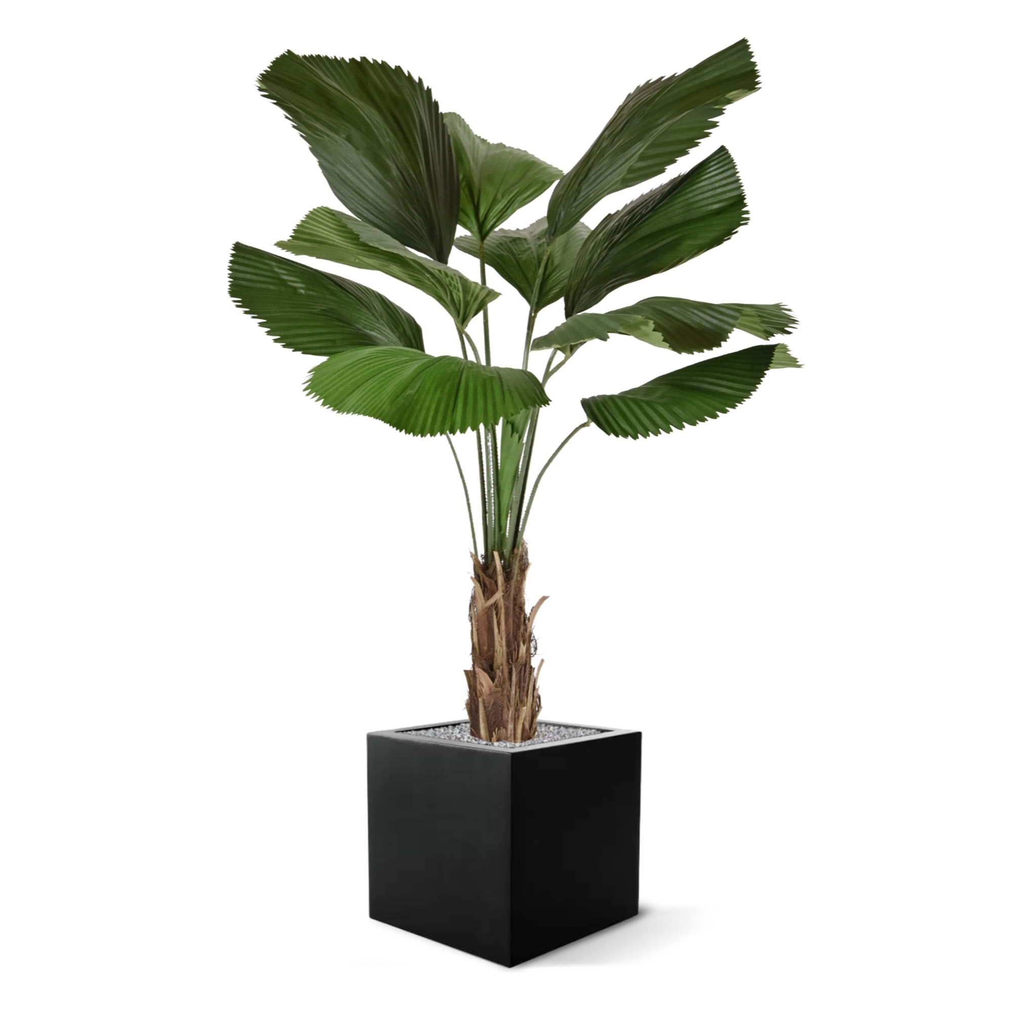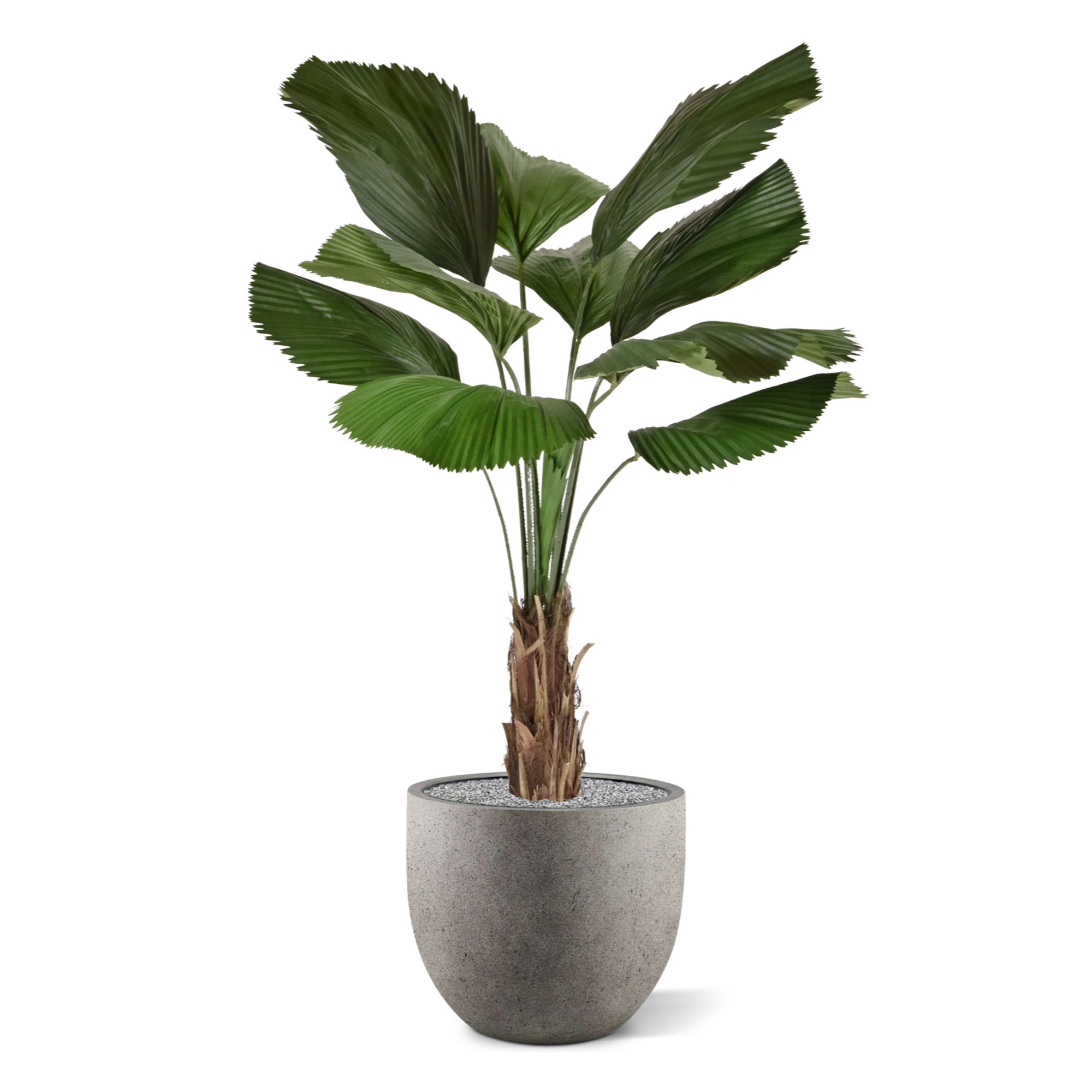 Questa attraente palma artificiale in vaso è la soluzione ideale per creare un'oasi tropicale in casa vostra senza troppi sforzi! La palma artificiale ha 10 foglie e un bel tronco con vera corteccia di palma. Le foglie a ventaglio, le profonde scanalature e la finitura seghettata sul lato della foglia la rendono appena distinguibile da una vera palma Licuala! Così potrete godervi l'ambiente verde e risparmiare il tempo che normalmente dedichereste alla manutenzione di questa pianta tropicale!