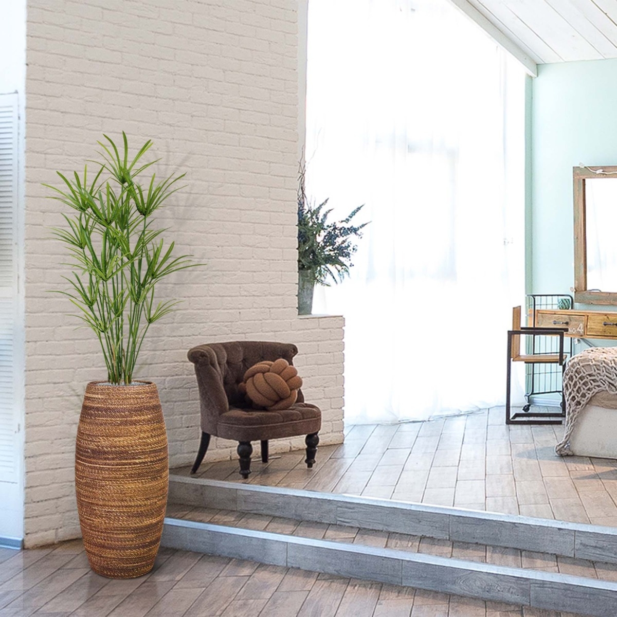 La giocosa pianta artificiale Papyrus è una bellissima aggiunta alla gamma di piante artificiali. Con i suoi numerosi germogli laterali, questo modello ha un aspetto ben arrotondato e naturale! Con un'altezza di circa 135 cm, la pianta artificiale può essere p
