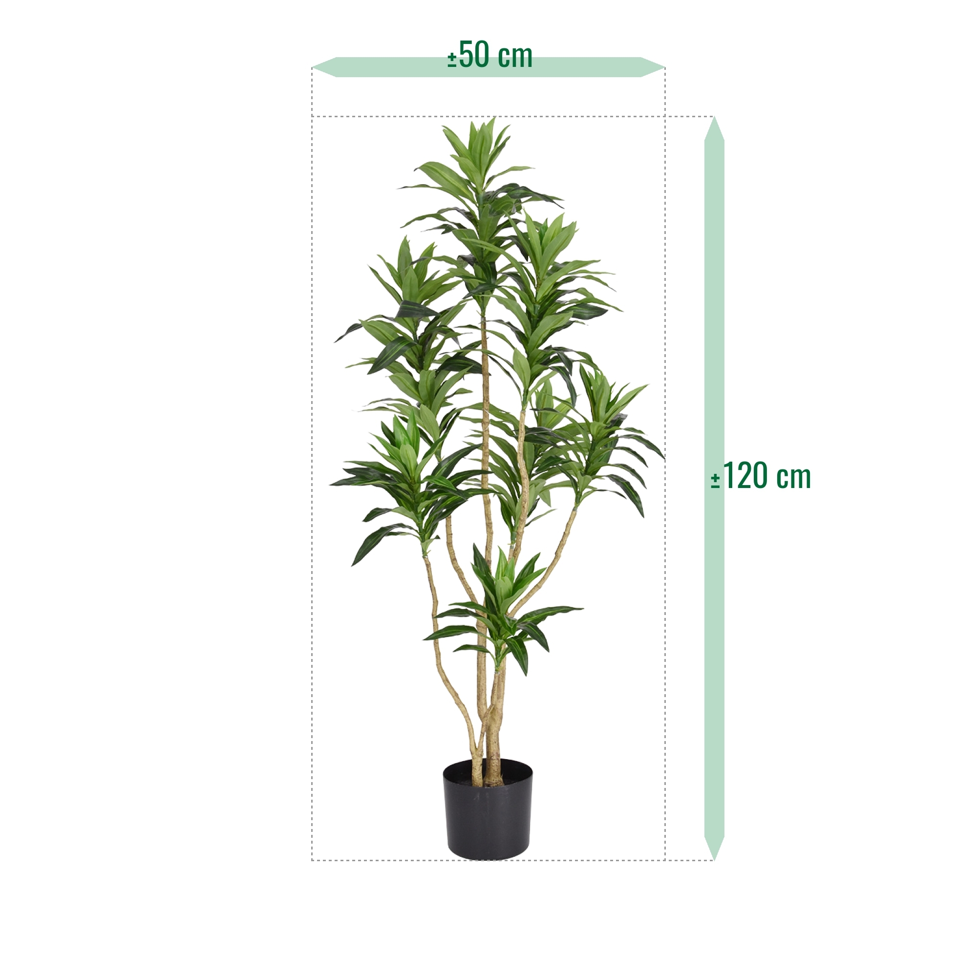 La Dracaena Reflexa Pianta Artificiale Verde 120cm RT è un’elegante e versatile aggiunta che dona tranquillità naturale a qualsiasi ambiente. Con i suoi 120 cm di altezza e 50 cm di larghezza, questa Dracaena artificiale è perfetta sia per interni moderni che classici. Le sue foglie verde brillante, con sfumature realistiche, offrono un aspetto naturale e vivace. La Pianta Artificiale Dracaena è ideale per chi ama il verde ma desidera evitare la manutenzione – perfetta per salotti, uffici, reception o ambienti commerciali.