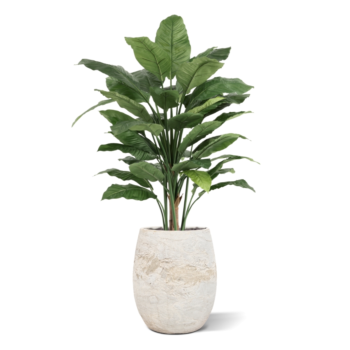 La Pianta Artificiale Spathiphyllum Deluxe 130 cm, progettata in esclusiva da BM™ Luxury, offre il perfetto equilibrio tra lusso, naturalezza e praticità senza manutenzione. Questa rigogliosa pianta artificiale, conosciuta anche come "Giglio della Pace", è un vero elemento decorativo che porta un’atmosfera tropicale e rilassante in qualsiasi spazio.