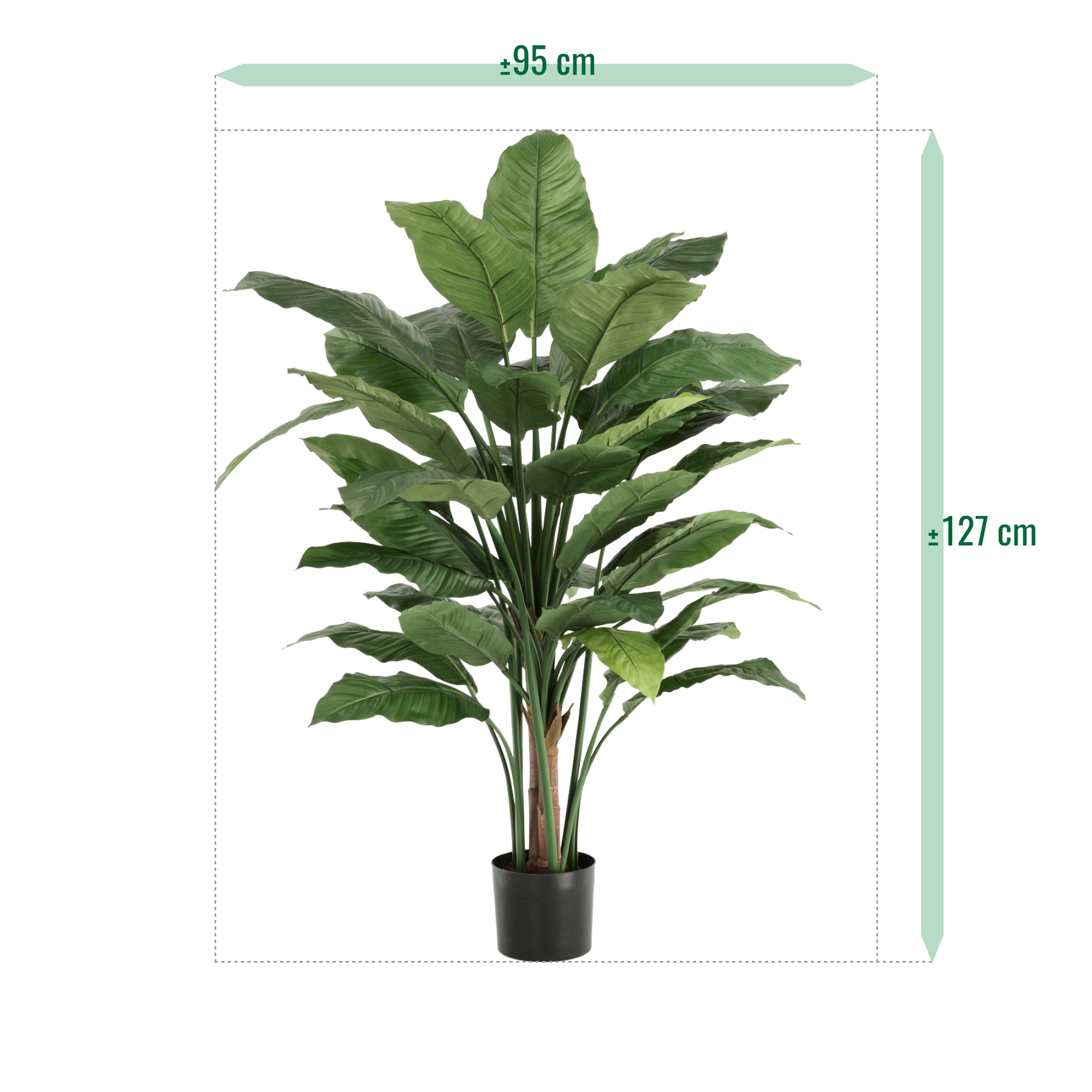 Con un'altezza di 130 cm e una generosa larghezza di 95 cm, questa pianta artificiale è un'aggiunta perfetta sia per interni moderni che per ambienti professionali. Grazie alla sua struttura fogliare densa dalla base alla cima, trasmette un senso di realismo ed eleganza senza richiedere alcuna cura.