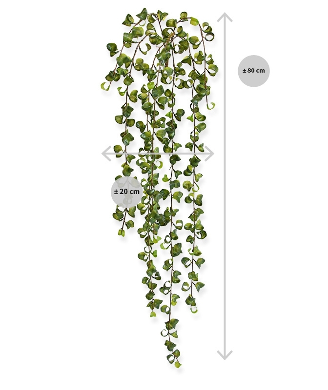 La famosa Peperomia Prostrata come pianta artificiale da appendere! Questa famosa pianta da appartamento ha origine nelle foreste pluviali tropicali dell'America centrale e meridionale. La Peperomia Prostrata ha la lunghezza ideale per essere drappeggiata su u
