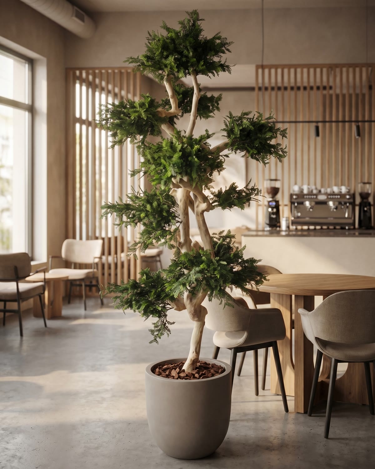 Lo splendido ramo di Acacia può essere montato sul tronco Japan, un tronco naturale suggestivo che rievoca paesaggi giapponesi e giardini zen. Il suo fusto è stretto e le sue ramificazioni rimandano alla struttura tipica dei bonsai giapponesi a palchi. Il tronco Japan è sprovvisto di corteccia e, per questo, è liscio, chiaro e presenta le sfumature tenui del beige e del marrone chiaro. Ciascuno tronco Japan è, proprio come in natura, unico e si distingue presentando caratteristiche proprie che lo rendono inconfondibile nelle sue curve sinuose, nelle sfumature di colore, nella posizione dei nodi e delle ramificazioni. I rami vengono installati uno a uno dai nostri esperti artigiani che, in base alle vostre esigenze e indicazioni, daranno così vita ad un esemplare irripetibile: potrete, infatti, anche scegliere l’altezza della vostra pianta, la misura del diametro della chioma e persino la sua forma. Una volta che la pianta sarà stata consegnata, non dimenticate, di aprirne i rami, e, in ultimo, di modellarli e piegarli nella posizione desiderata.